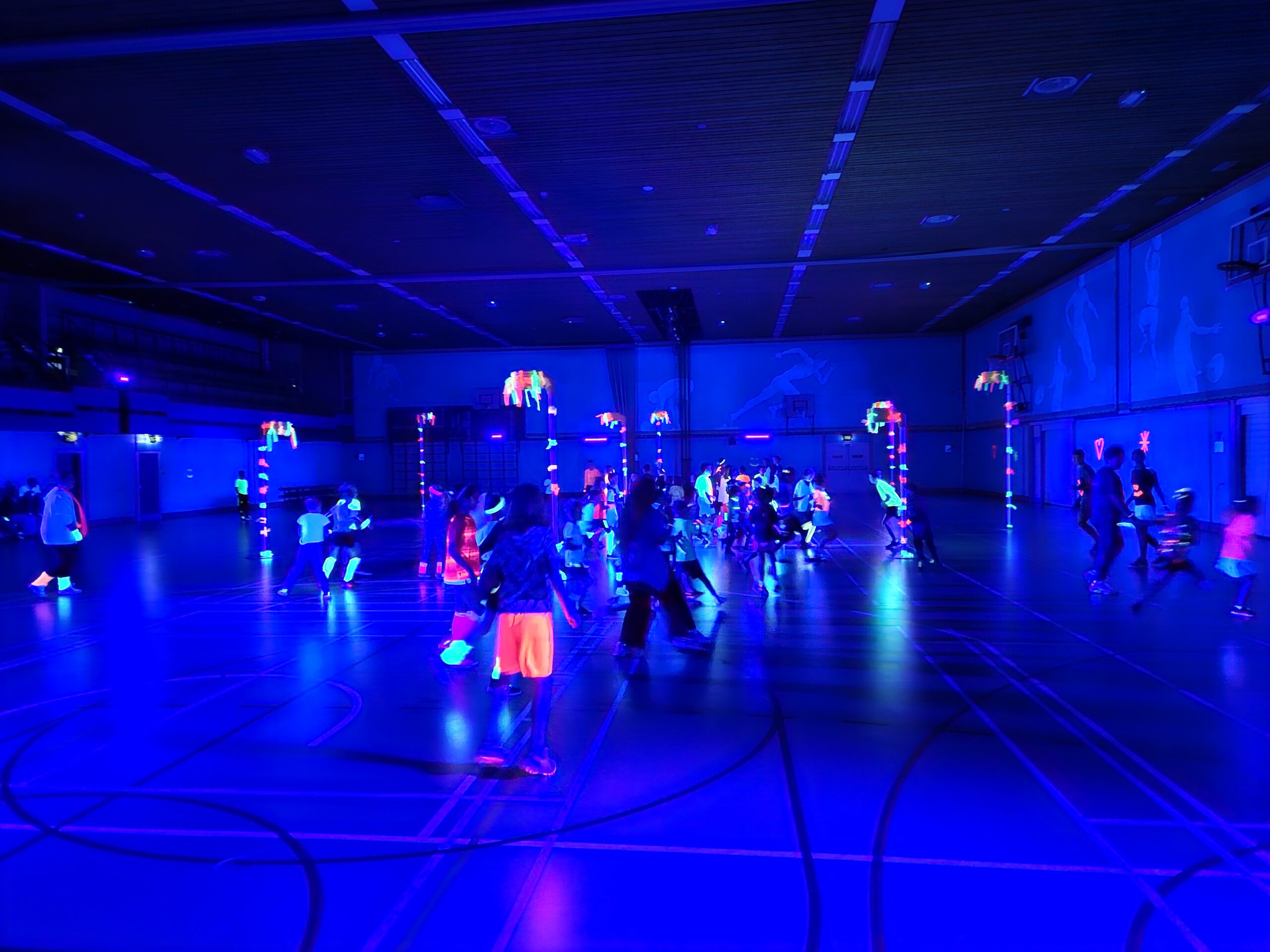 Deze avond toveren we Sporthal Heerenmäten in Zevenaar om tot donkere zalen. De kinderen maken in groepjes kennis met elkaar, korfbal en natuurlijk de trainers. Zodra het gooien, vangen en schieten op de korf onder de knie is, spelen de kinderen in de blacklight-zaal ook daadwerkelijk een wedstrijdje Glow in the Dark korfbal.