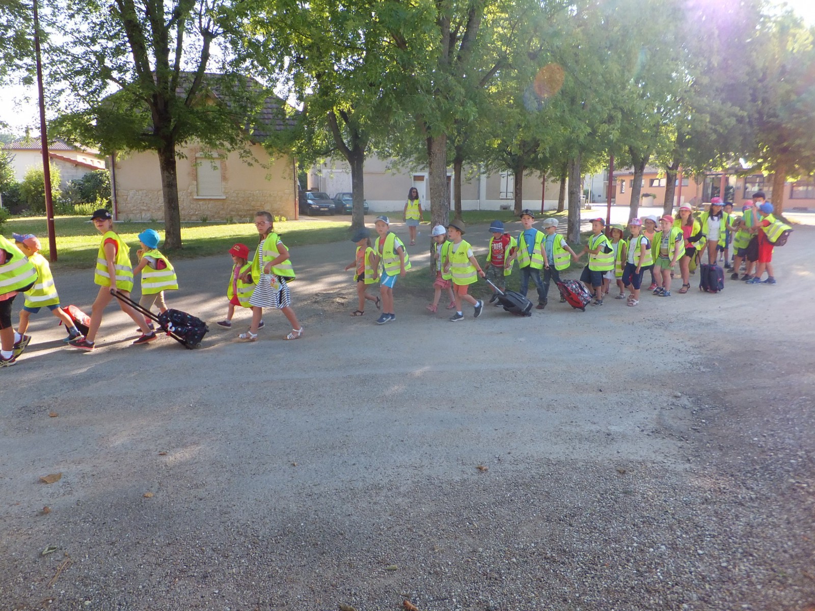 Na vijf km ben ik al op de route en zeker al 10 km van Bourg en Bresse. Het is de D79 , een kaarsrechte weg. In Saint Julien – Ressouze haal ik eten in een kleine winkel. In het parkje ga ik een bank zitten. Een vrouw in een passerende auto kijkt zo lang, dat de heftig moet bijsturen om een boom te ontwijken. Blijkbaar komen hier geen vreemdelingen. De schoolkinderen lopen allemaal hand in hand in een rij in een geel hesje. Ze lopen naar een bus. Alle kinderen hebben een hoedje tegen de zon op. Dat zegt genoeg voor vandaag. Het zal wel weer erg warm worden. De kinderen hebben een schoolreisje.