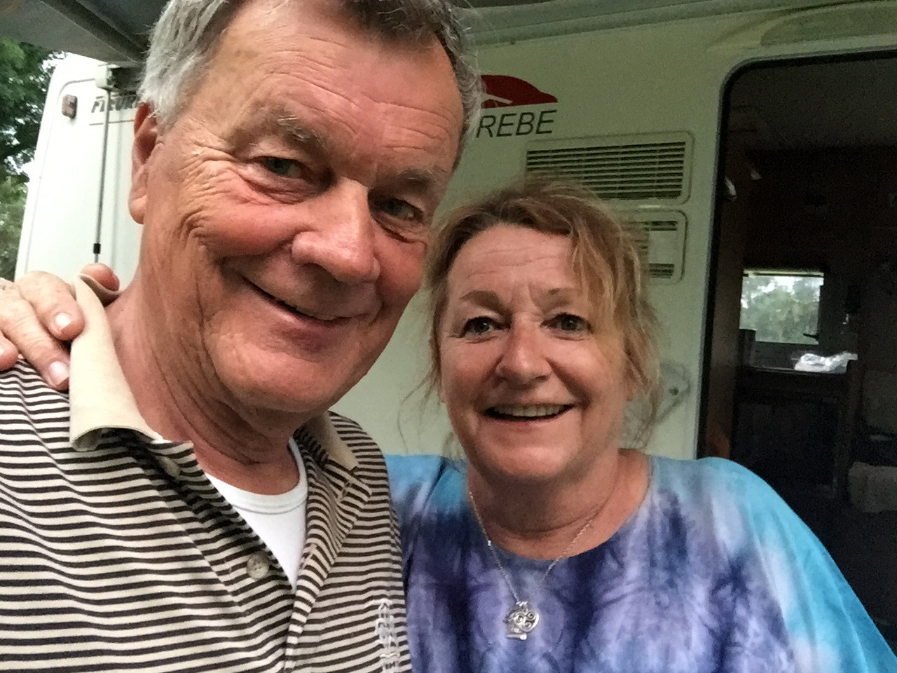 Ze heet Brigitte en leeft in de camper en trekt in de zomer door Frankrijk. Ze heeft wel een dochter, is 58 jaar en alleenstaand. Met de vertalingen over mijn woonplaats Duiven heeft ze moeite. Steeds hoort ze Duiven. Ik maak haar duidelijk dat het de woonplaats is. Ik had haar al een kaartje met mijn gegevens gegeven en de website heeft ze ook al bekeken. Na de koffie komt een soort pruimenlikeur op tafel en dan wordt het daarna best gezellig, maar toch is het tijd om de slaapmat op te zoeken. We maken nog een Selfie en ik bedank Brigitte voor de gastvrijheid. Wat een leuk contact.