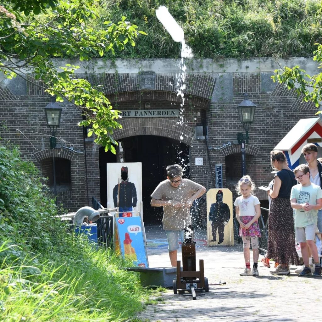 Uiteraard is er ook in het fort zelf het nodige te beleven. Dompel je digitaal onder in de ondergrondse wereld van het fort of ga bij het kanon met de kanonnier op de foto. Voor de kinderen zijn er Soldatenspelletjes en is er een speciale Zakkenspeurtocht uitgezet.Ook de Puzzeltocht ‘Expeditie Pannerden’, waarbij kinderen met een opdrachtenboekje de elementen trotseren en op jacht gaan naar een heuse amulet, is sterk aan te raden. En wellicht vind je dan ook nog het gouden ei!