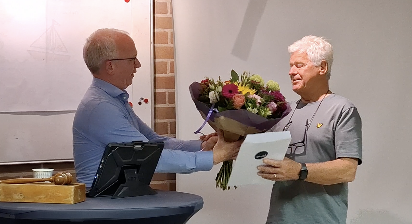 | Dinsdag 24 april jl. was een zeer bijzondere avond voor Theo Luub. Tijdens de algemene ledenvergadering (ALV) van Duikteam Sub Aqua Libera uit Lobith werd hij in het zonnetje gezet omdat hij 50 jaar lid was. Maar dat niet alleen, hij is ook al 50 jaar vrijwilliger, jarenlang was hij voorzitter en nog steeds is hij jeugdtrainer. Ook doet hij al de nodige jaren de inkoop voor het clubhuis en bestiert samen met zijn vrouw Hennie, de bar. En het meest bijzondere, hij is het lid dat het langste niet duikt!!Uit handen van de huidige voorzitter Arjan ter Bogt ontving hij een cadeau met een muzikaal tintje, de andere passie van Theo. Hij was er even stil van. De ALV was ook een bijzondere omdat die in het teken stond de toekomst van de club. De ouders van de jeugdleden waren met een bos tulpen verleid om ook te komen en het was drukker dan verwacht. De inzet was helderheid te krijgen over de wensen van alle leden. Op de vraag: wat beweegt je om lid te zijn, was het meest gegeven spontane antwoord: De gezelligheid! Dat houden we zeker vast. Het was een zeer mooie eerste stap. |