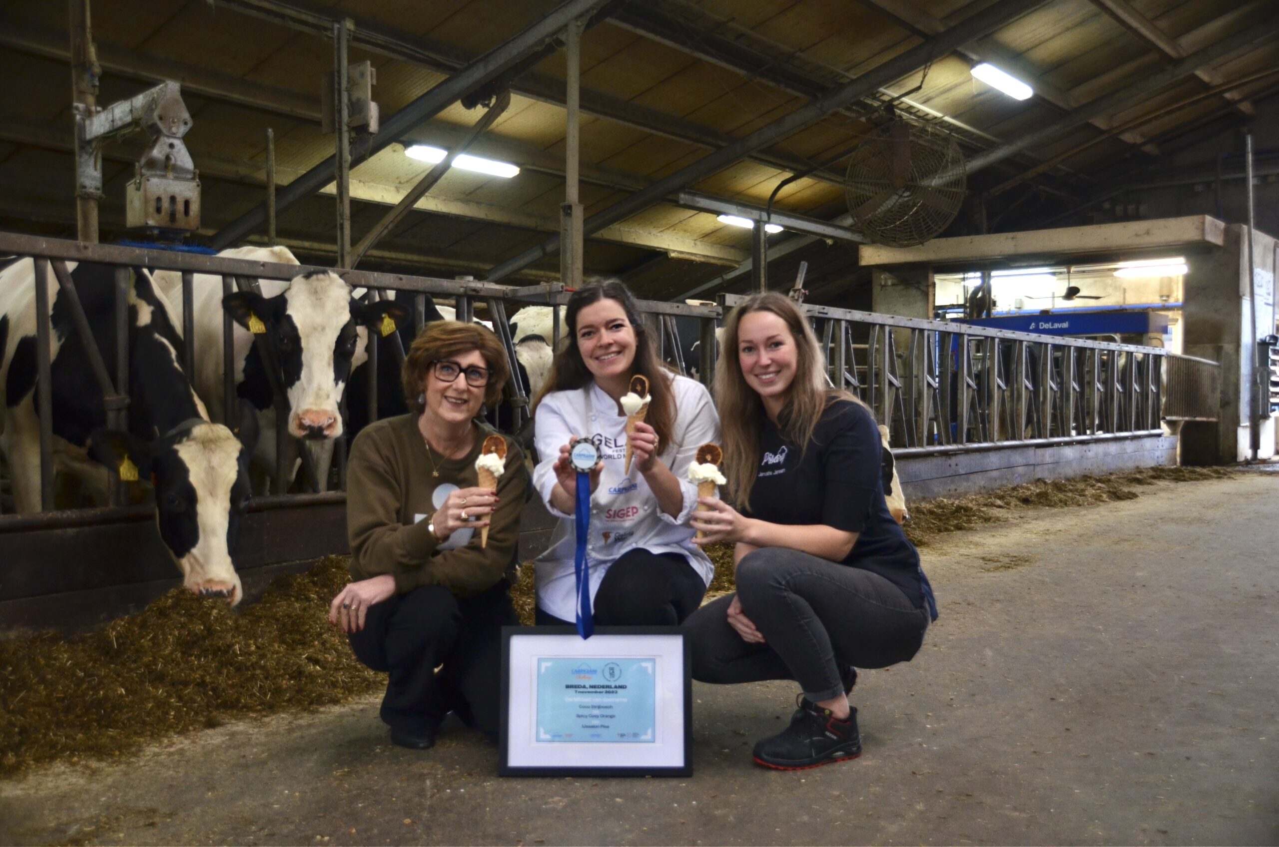 Samen hadden ze een herfstig ijsje bereid voor de jury genaamd ‘Spicy Cozy Orange’. Als basis een Liemers room-ijsje (met melk van HippeKoeien in Didam) geïnfuseerd met sinaasappel en kardemom met daarbij een variegato van sinaasappel en speculaas en een crumble van pure chocolade, hazelnoot en speculaas. En met trots mogen ze vertellen dat ze hierbij 4e van Nederland zijn geworden!