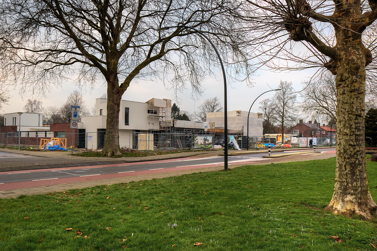De bouw van de zeven CPO (55plus) woningen aan de Oranjelaan vordert gestaag. Op dit moment is men bezig met de afwerking van de woningen. Op de foto van Ina Kotterman is te zien dat één van de woningen nog een ‘jasje’ aan heeft. Zo kan er ook bij erg slecht weer worden doorgewerkt. De woningen worden naar verwachting in de loop van het voorjaar opgeleverd. Op de plaats waar ooit een school heeft gestaan komt nu weer leven in de brouwerij. De Oranjelaan krijgt er een mooie woonlocatie bij.Duoplan Architecten in Zevenaar heeft de woningen ontworpen en ze worden gebouwd door Rots Bouw Zevenaar BV.