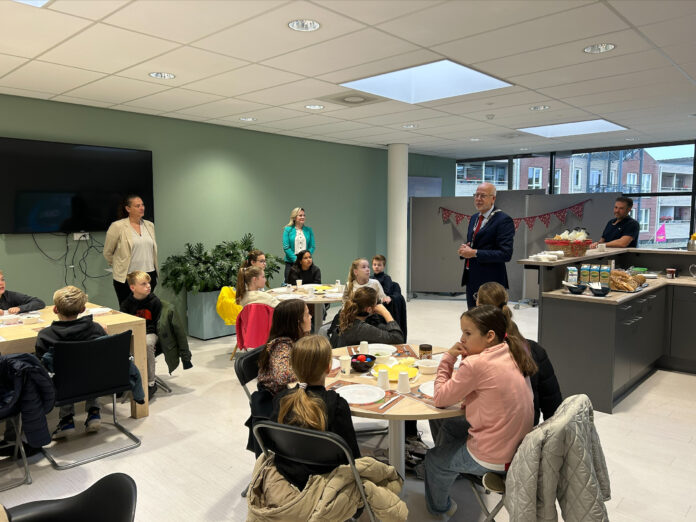 Vanmorgen zat burgemeester Van Hout samen met kinderen van groep 8 van basisschool IKC De Brug aan tafel voor een gezamenlijk gezond ontbijt. Het ontbijt werd verzorgd door Zuivelboerderij IJsseloord.