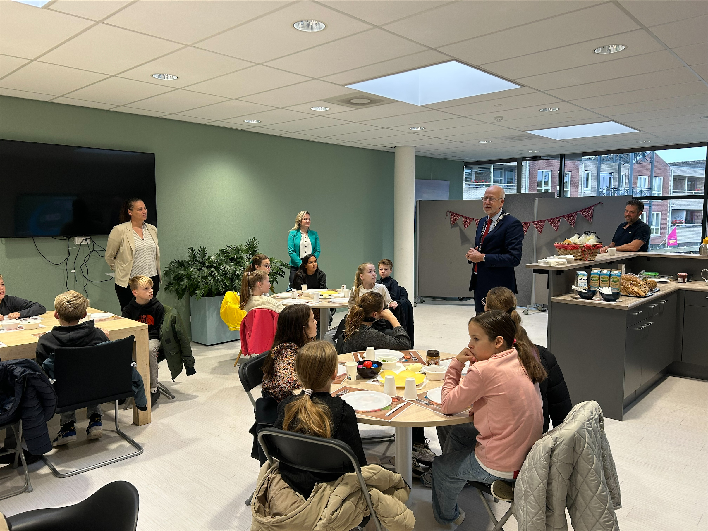 Tijdens het ontbijt spraken de kinderen met de burgemeester en de familie Lubbers van Zuivelboerderij IJsseloord over vragen als: ontbijten zij elke dag, wat eten ze het liefst en waarom is deze maaltijd zo belangrijk? Het werd een leerzame en gezellige ochtend, waarin het belang van een gezonde start van de dag centraal stond.