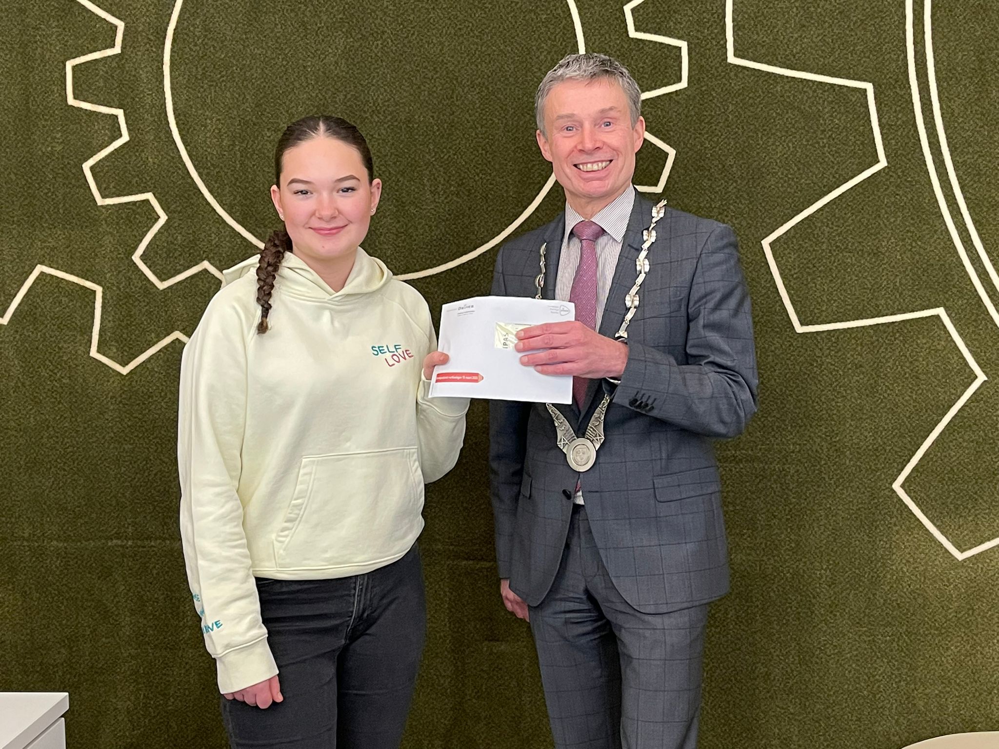 Vandaag heeft burgemeester Huub Hieltjes van de gemeente Duiven twee stempassen overhandigd aan Liat Blum. Liat wordt komende zondag 18 jaar. Daarom mag zij volgende week stemmen. Zij is dan één van de jongste stemmers van de gemeente Duiven.