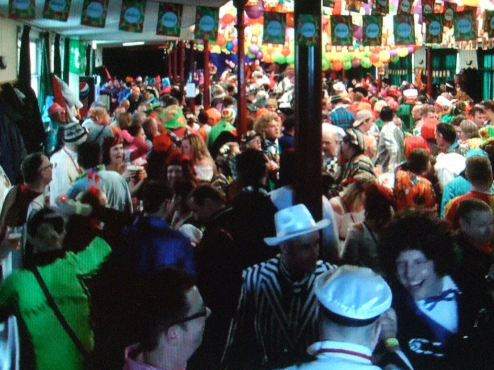Gezellige drukte in het schuttersgebouw tijdens de carnaval.