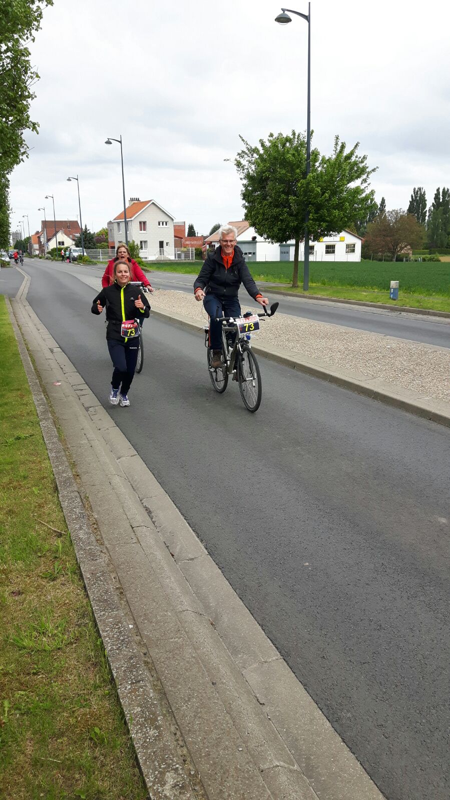 Foto: fiets voor: Theo Worm, loper: Nicole Tacke, fietser achter: Wilmi Schennink