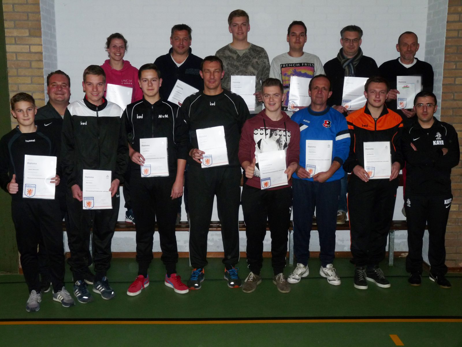 De cursus bestond uit vier avonden en vier praktijkwedstrijden. Bij de wedstrijden werden zij begeleid door een aantal al even enthousiaste praktijkbegeleiders van de eigen vereniging. De dertien geslaagden, twaalf mannen en één vrouw, kunnen nu met voldoende kennis in hun bagage het veld opstappen en zijn hiermee een waardevol onderdeel geworden van het voetbalspelletje.