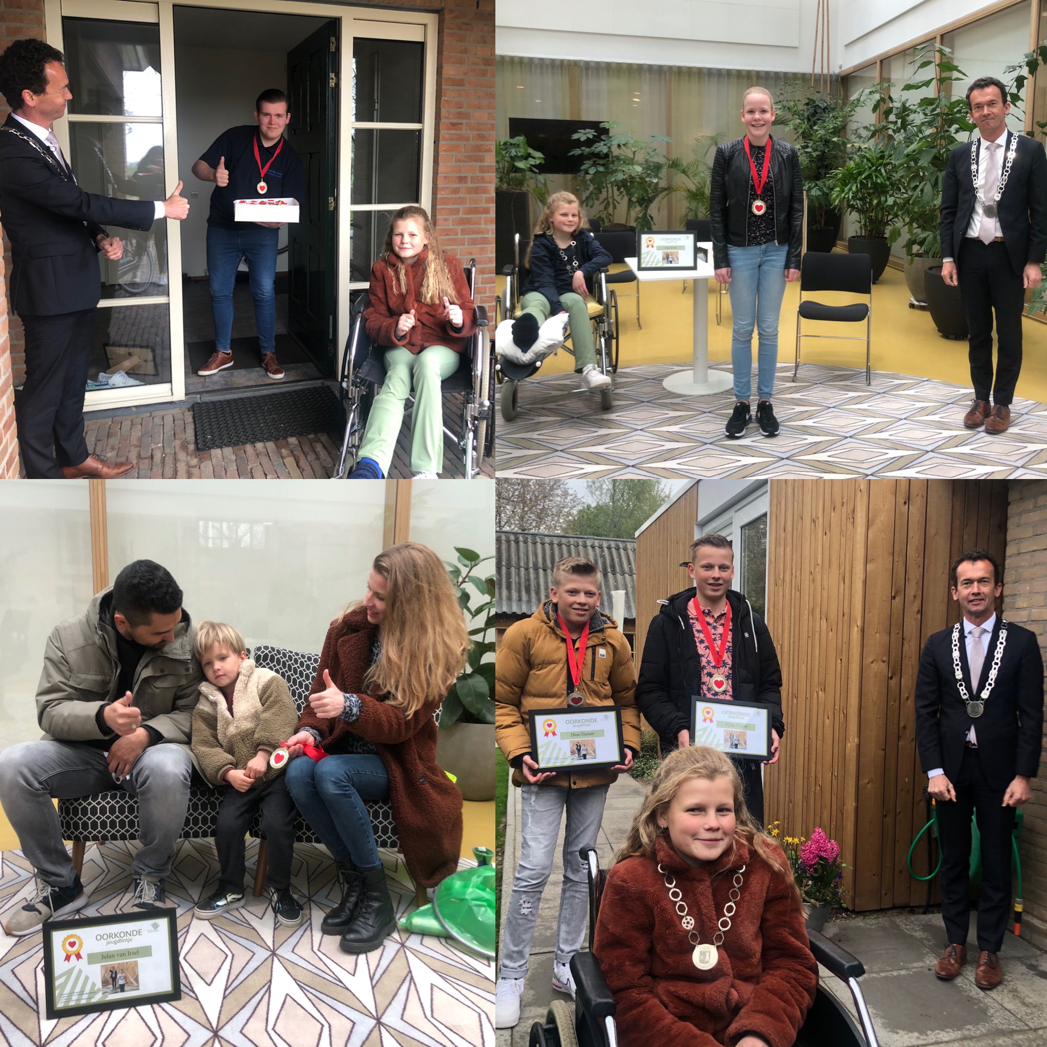 Op donderdag 29 april heeft kinderburgemeester Jasmijn Braam de eerste vijf jeugdlintjes van gemeente Zevenaar uitgereikt in het bijzijn van burgemeester Lucien van Riswijk. Het jeugdlintje is een jaarlijkse onderscheiding voor jonge Zevenaarse inwoners tot en met 17 jaar. Het gaat om jonge ‘helden’ die zich belangeloos inzetten voor een ander of helpen gemeente Zevenaar mooier te maken doordat zij iets bijzonders hebben gedaan. Dit kan van alles zijn zoals een ‘heldendaad’, een bijzondere prestatie, vrijwilligerswerk, een bijzonder initiatief, geldinzameling voor een goed doel, etc. De eerste vijf Zevenaarse jeugdlintjes zijn uitgereikt aan Julan van Irsel, Lisa Zoon, Tim van der Berg en de broers Dion en Dylan Durant.