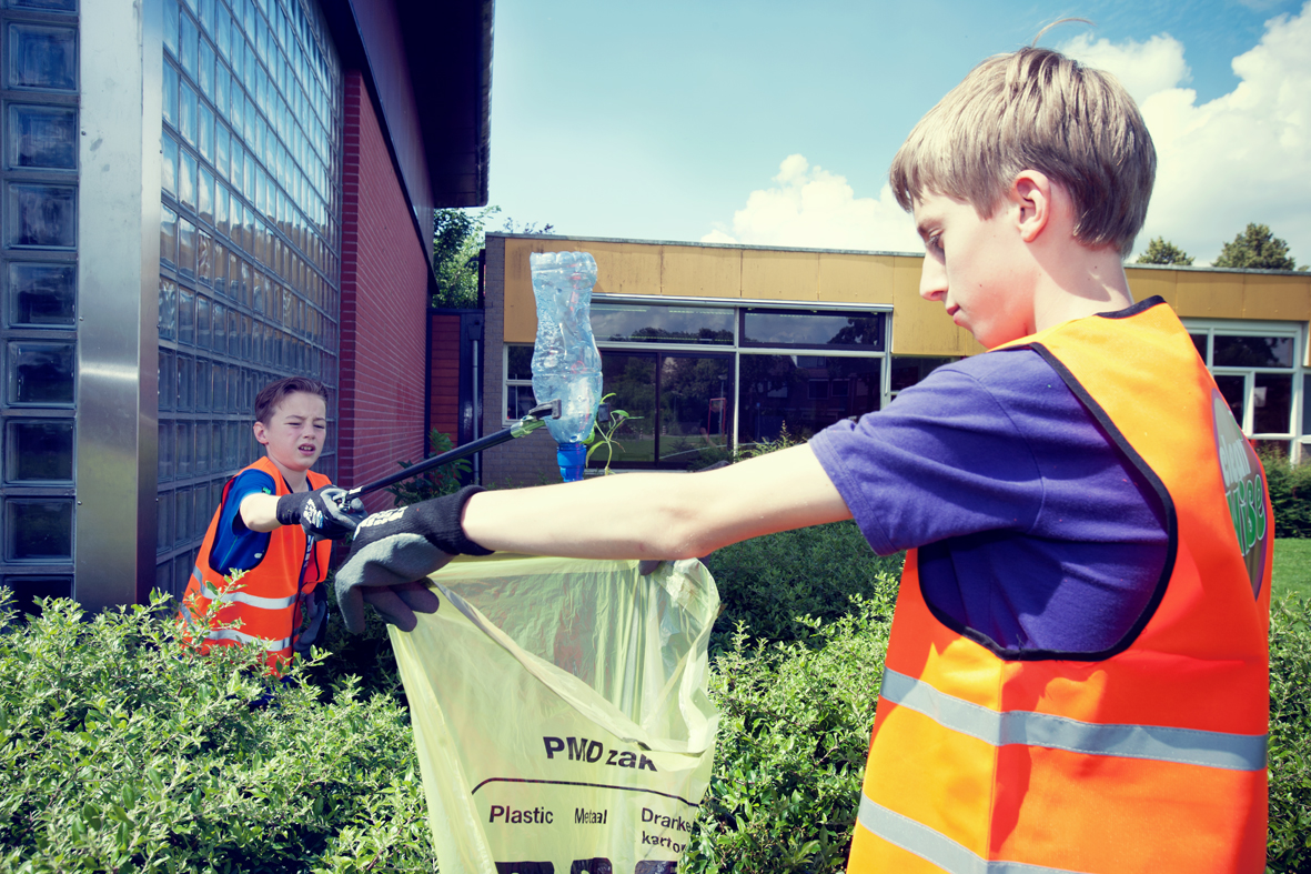 Direct na de ondertekening zijn de leerlingen in groepjes en met veel enthousiasme van start gegaan om zwerfaval rond hun school op te ruimen. De leerlingen kregen daarvoor veiligheidshesjes, handschoenen en knijpers. Na de opruimactie kregen de leerlingen een leuke surprise: een klein PMD minicontainertje.