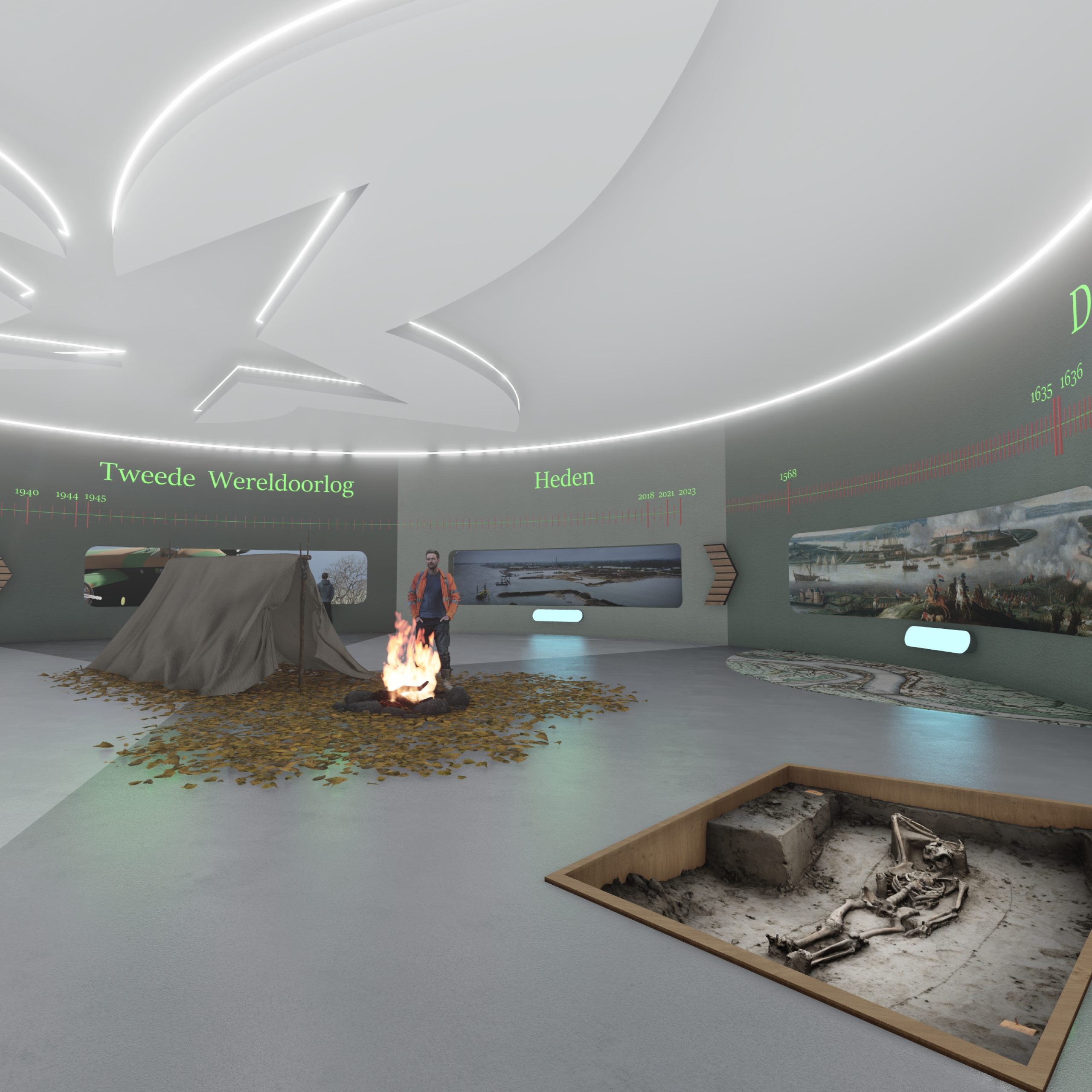 Van de vier vindplaatsen die terugkomen in het museum zijn de overblijfselen van een omsingelingslinie uit de Tachtigjarige Oorlog het meest bijzonder. Deze linies, die bestonden uit versterkingen en loopgraven of grachten, werden meestal rond steden aangelegd. De in Spijk aangetroffen resten maakten deel uit van een omsingelingslinie rondom de Schenkenschans, op tegenwoordig Duits grondgebied. Daarnaast werden ook veel restanten van een voormalige steenfabriek opgegraven.
