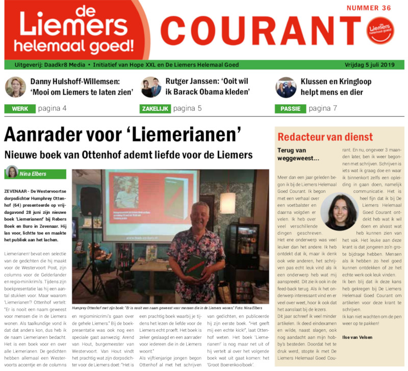 HomeNieuws uit de regioCultuurDLHG COURANT NUMMER 36 – VRIJDAG 5 JULI 2019