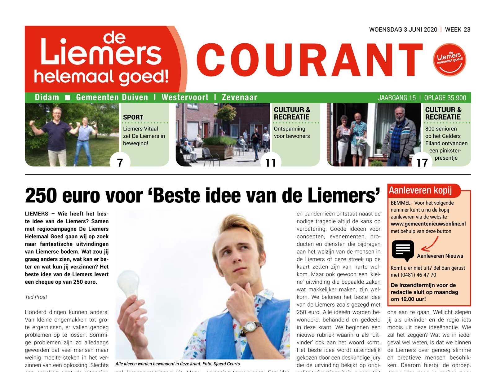 De Liemers Helemaal Goed Courant wordt huis aan huis in de Liemers bezorgd. De nieuwste editie van De Liemers Helemaal Goed Courant is ook online te lezen. Op deze pagina de laatste editie.