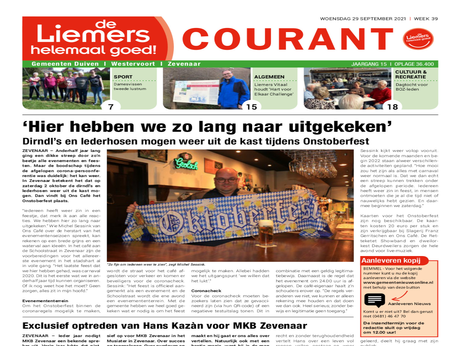 De Liemers Helemaal Goed Courant wordt huis aan huis in de Liemers bezorgd. De nieuwste editie van De Liemers Helemaal Goed Courant is ook online te lezen. Op deze pagina de meest recente editie.