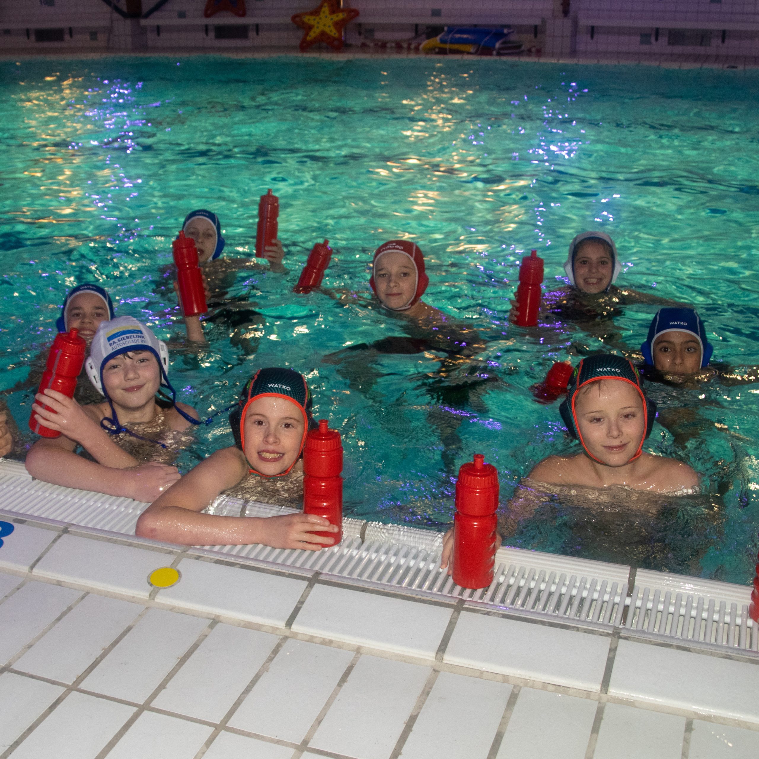 Vind jij het leuk om te zwemmen en kun je met een bal overweg kom je dan met ons mee trainen op woensdag en vrijdagavond van 18:30-19:30. We zijn een leuk groepje van jongens en meisjes in de leeftijd van 8 tot 12 jaar. We zijn een startend team. Kom jij ons team versterken?