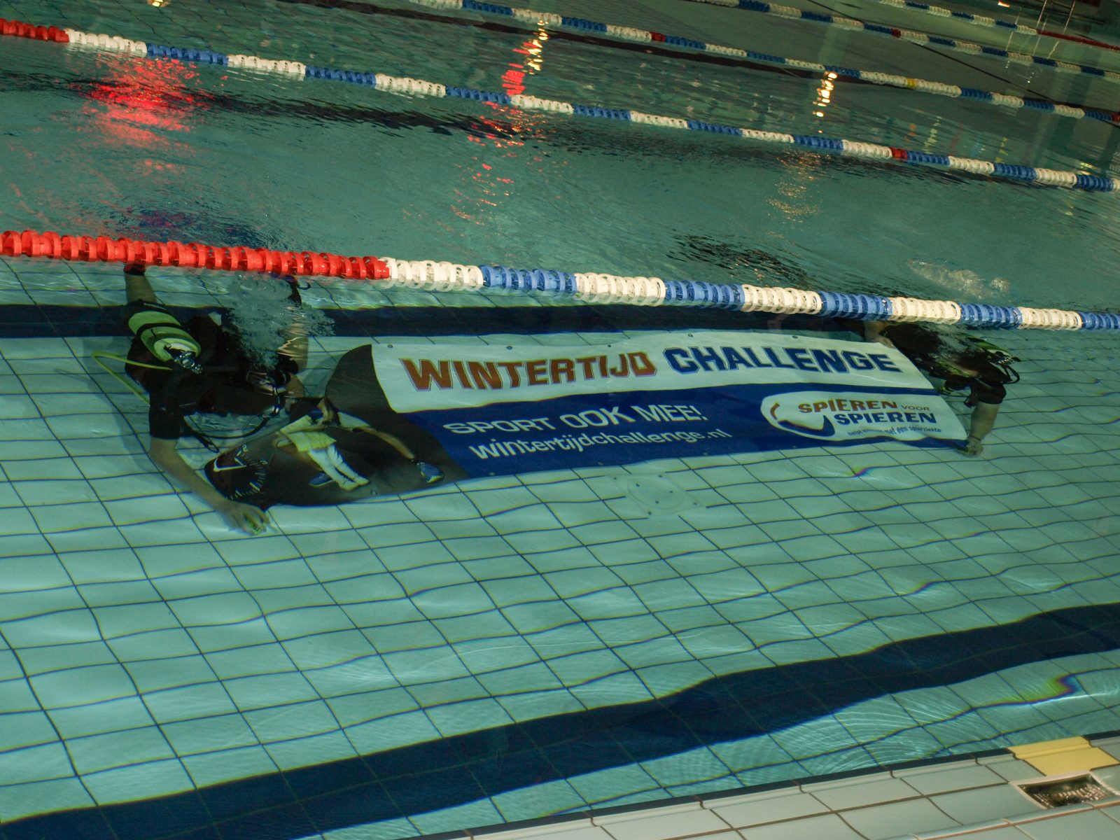 De jaarlijkse wintertijd challenge werd goed bezocht en maar liefst dertig personen deden mee aan de duikclinic. Onder begeleiding van enthousiaste instructeurs maakten zij kennis met de duiksport. Naast het doen van verschillende oefeningen met een perslucht set hadden zij een leuke tijd onder water met onder andere onderwater frisbees en dobbelstenen. Zelfs een dame van 84 jaar deed mee aan de clinic. Het was haar grote wens om ooit nog eens te duiken en te ervaren wat het is om in een driedimensionale wereld gewichtloos te zweven. Alle deelnemers kwamen met een tevreden gevoel het water uit. Tevens werd er een leuke kano clinic georganiseerd door roei- en kanovereniging Het Anker.