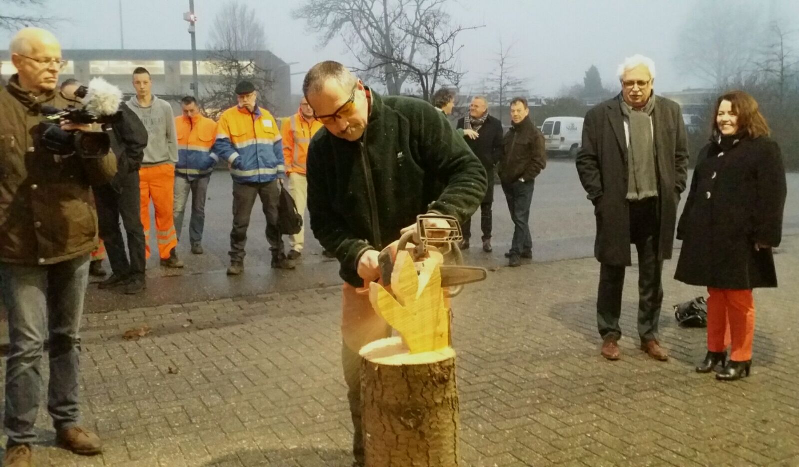 Maandagochtend 12 december vierde gemeente Zevenaar met een gezamenlijk ontbijt op de gemeentewerf het feit dat ze weer een stap dichterbij een energieneutrale gemeente is. Vandaag zijn de eerste vijf elektrische gereedschappen in gebruik genomen, namelijk een bosmaaier, stokzaag, twee heggenscharen en een kettingzaag. De accu’s van deze apparaten worden opgeladen door de zonnepanelen die op het dak van de gemeentewerf liggen. Waar mogelijk gaat de gemeente over op elektrische gereedschappen, zodra een apparaat aan vervanging toe is. Ter opluistering van de ingebruikname heeft een kunstenaar met een kettingzaag een passend beeld uit hout gezaagd.