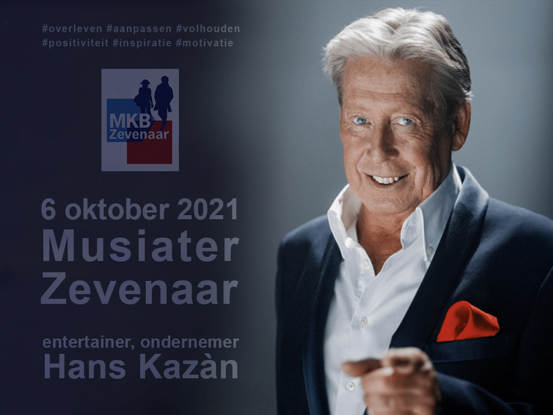 Ieder jaar nodigt MKB Zevenaar een bekende spreker uit. Vorig jaar lukte dat niet, maar op woensdag 6 oktober 2021 is het zo ver. Entertainer en ondernemer Hans Kazàn treedt exclusief op voor MKB Zevenaar in het Musiater in Zevenaar. Over succes en tegenslagen. Over overleven en aanpassen, volhouden en inspiratie vinden in kleine dingen. Hans Kazàn heeft het allemaal meegemaakt en hij gaat er ons alles over vertellen. Natuurlijk ook met een beetje magie want hij is de man die alles kan!