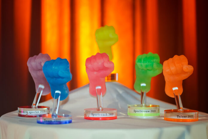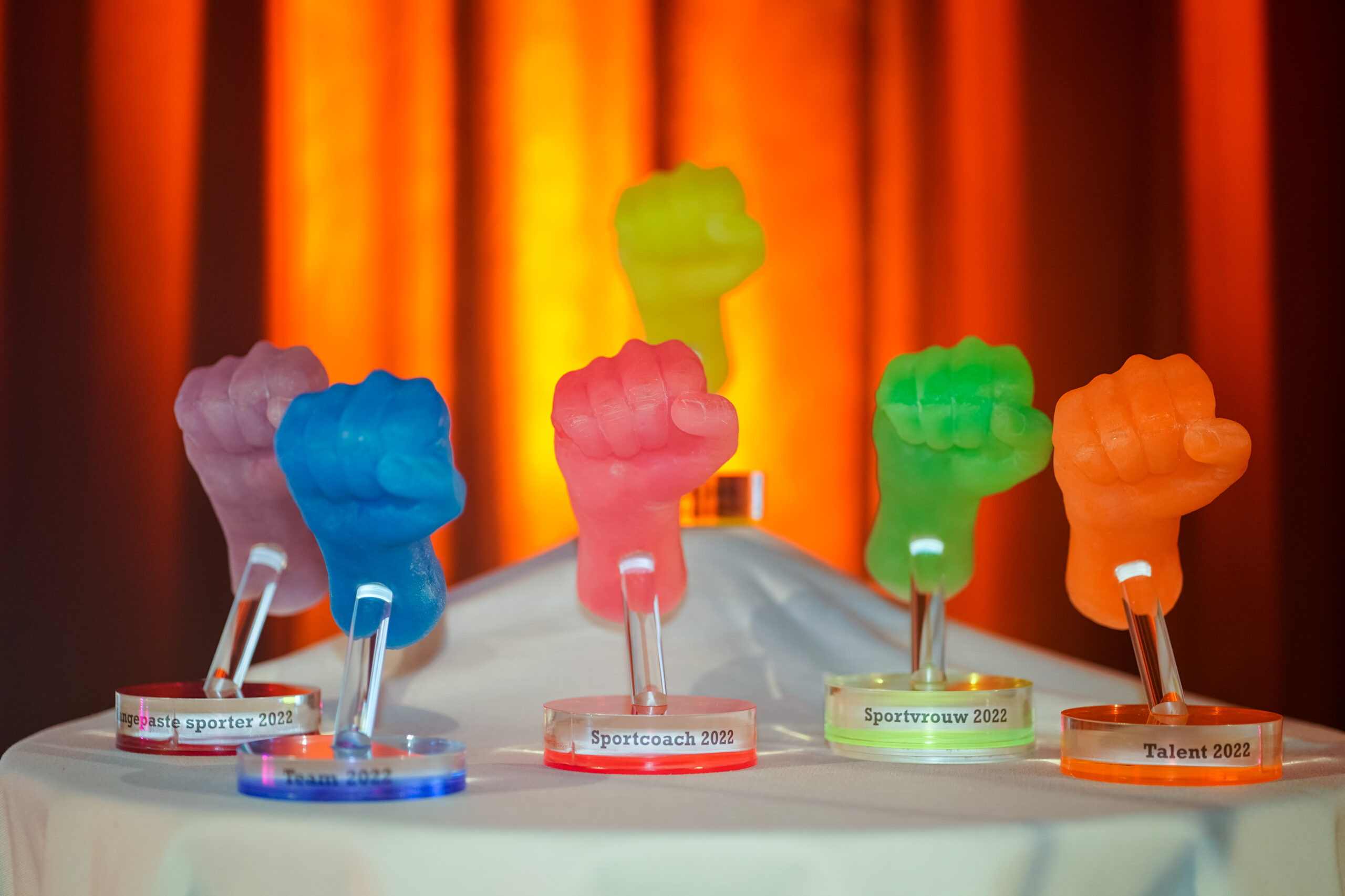 De felbegeerde trofeeën van de Liemerse Sportprijs! Dit jaar wederom speciaal gemaakt door de Liemerse ondernemers Atelier Kevin van den Berg en Kunststofshop.