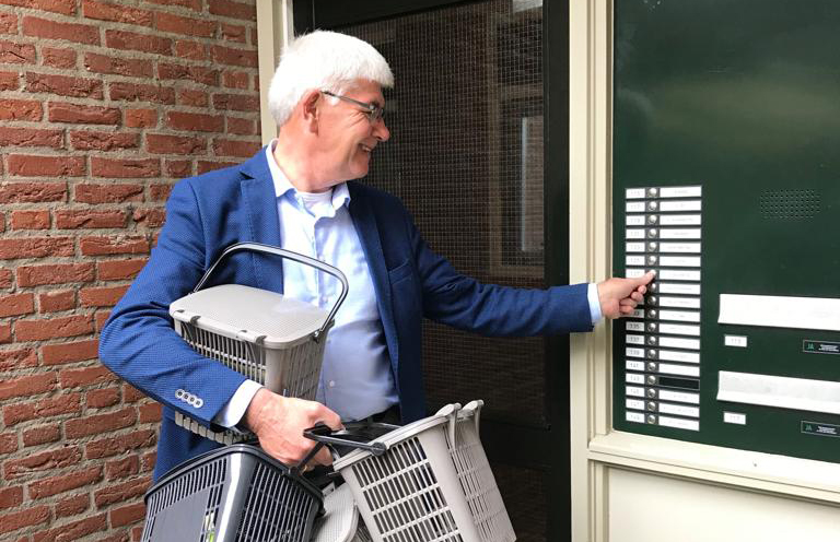 Wethouder Hans Breunissen deelt keukenbakjes uit in Westervoort