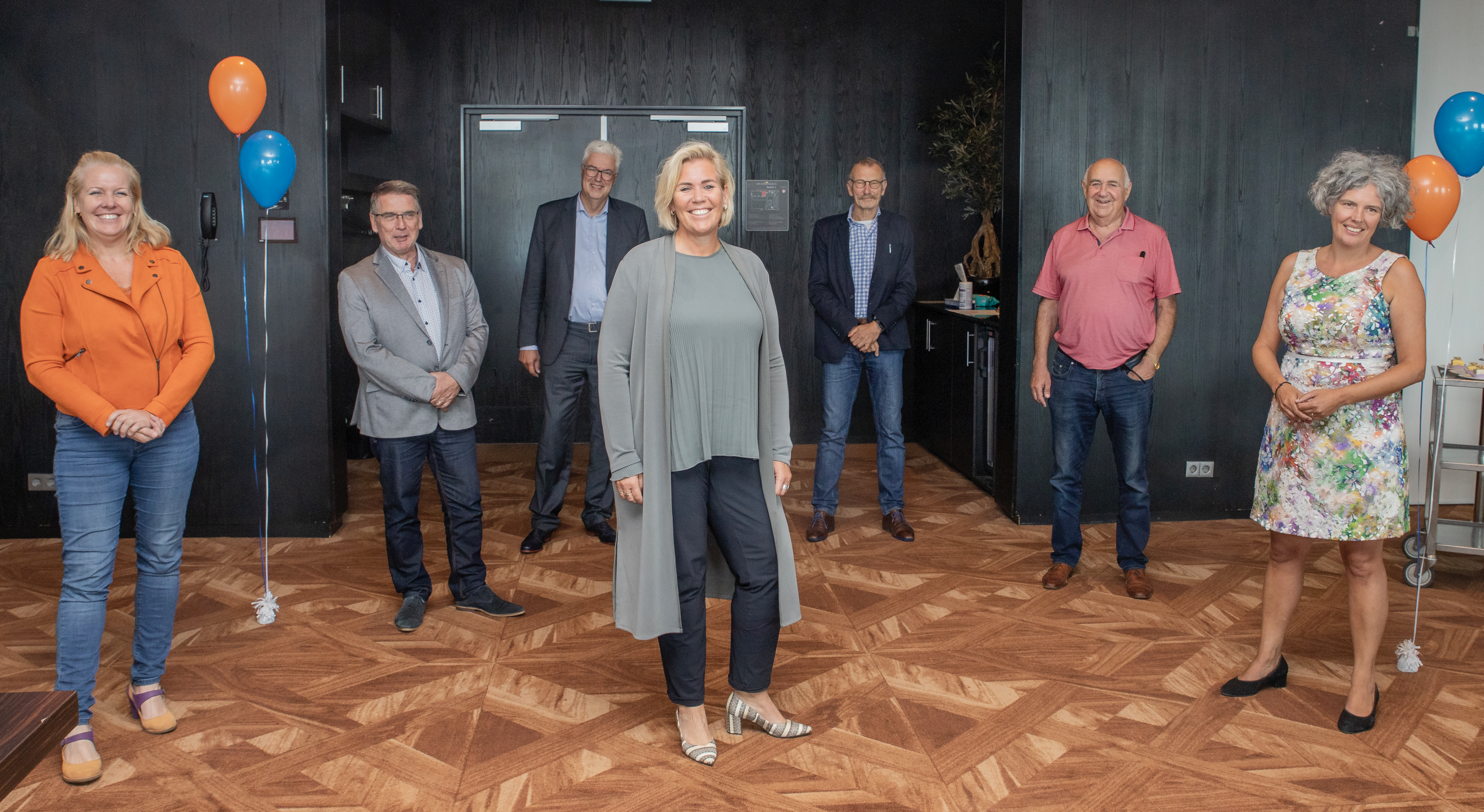 Het nieuwe bestuur van de Liemerse Ambassade. Vanaf links Belinda Elfrink, Rob Raaijman, Harry Ankoné, Erika Diender, Fons Eijkelkamp, Henk Dekker en Gemma Tiedink.
