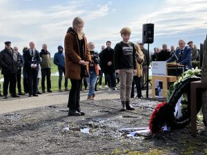 Naast burgemeester Van Hout legden kinderen van IKC Het Ravelijn, de Historische Kring, de heer en mevrouw Godfrey en de Dutch Polar Bears een krans of bloemstuk.