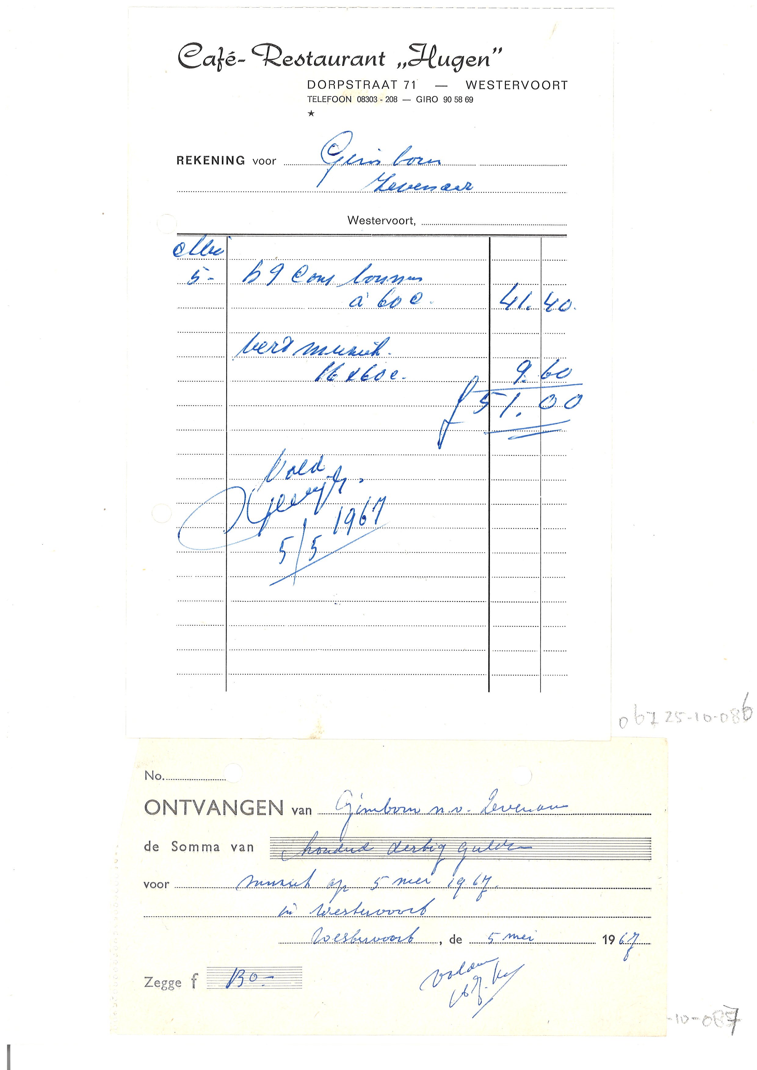 Home‘Hugen’, decennialang een begrip in Westervoort  foto LM café-restaurant Hugen rekening Gimborn met ontvangstbewijs_1