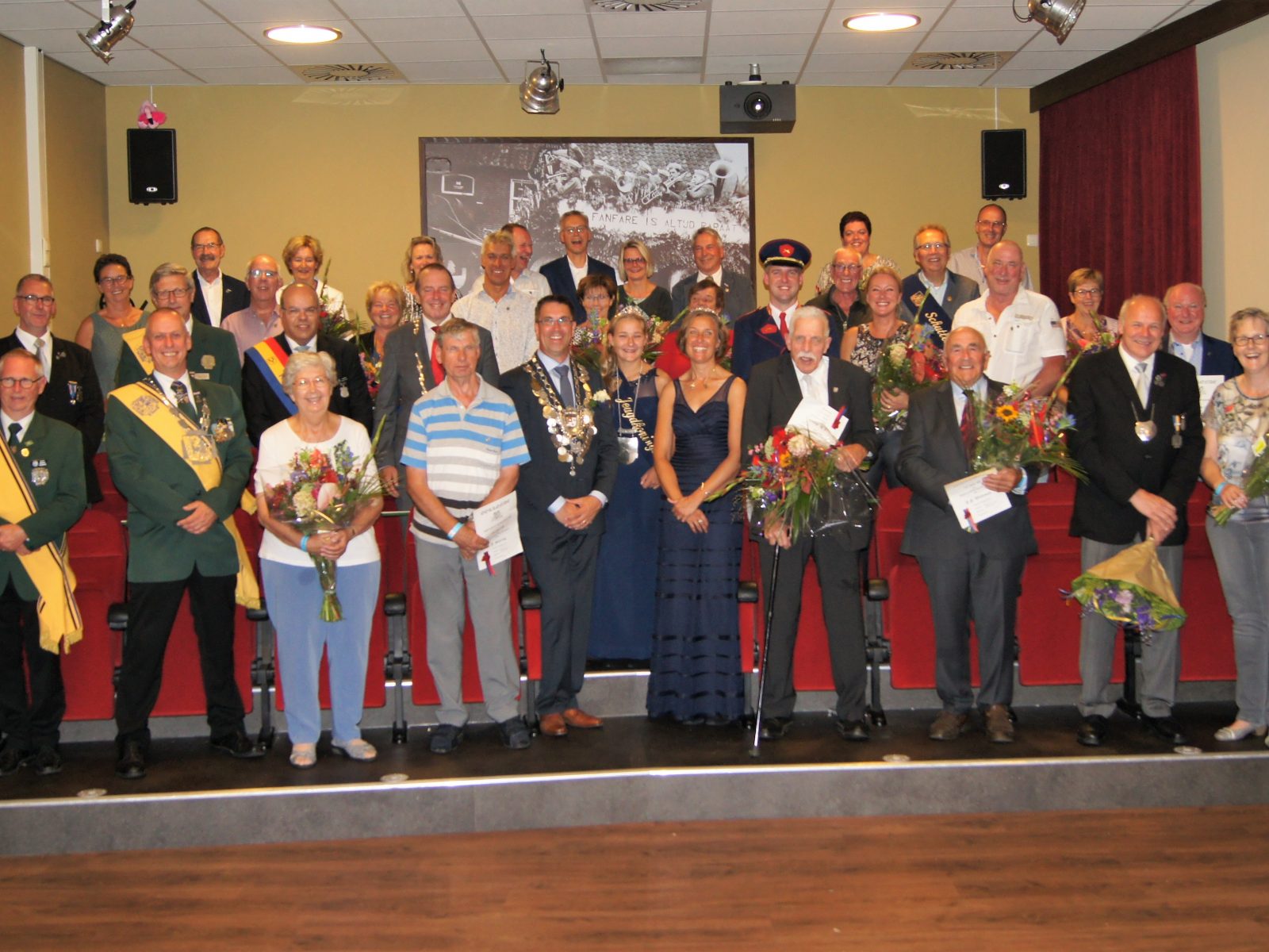 Schutterij Onderling Genoegen heeft tijdens de traditionele schuttersavond op dinsdag 28 augustus een groot aantal jubilarissen gehuldigd. De bijbehorende speldjes werden uitgereikt door burgemeester Rik de Lange.