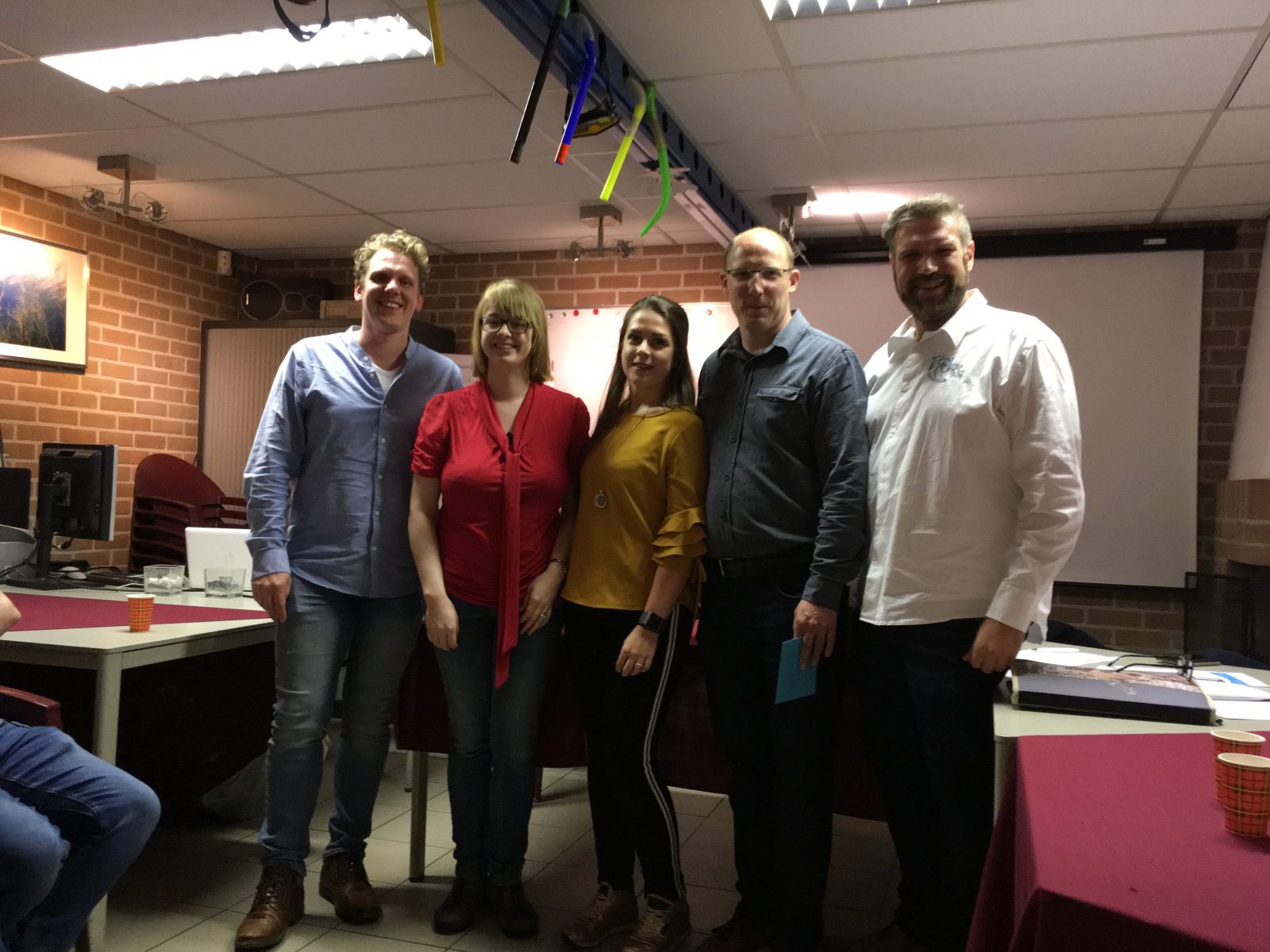 Foto van Jubilarissen en voorzitter van links naar rechts: Dave Banning (25jaar), Iris van Marwijk (10 jaar), Joyce Aarsen (10 jaar), Roel van Leeuwen (25 jaar), Wilbert Stapelvoort (Voorzitter SAL).