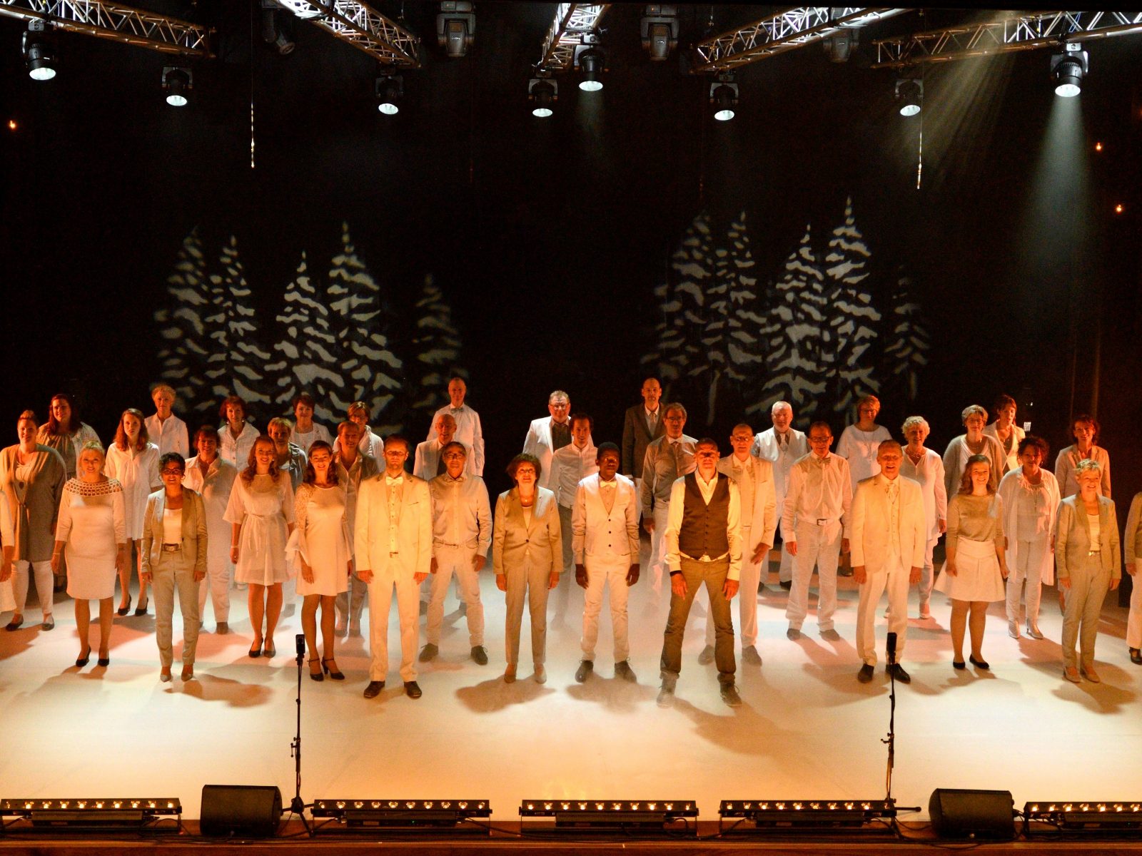 Regisseur Richard Sprokkereef had het podium omgetoverd in een winterwonderland met een prachtige witte vloer met wisselende lichtbeelden. De zangers en zangeressen, verrassend in het wit met grijs gekleed, kwamen mooi uit in het sneeuwlandschap.
