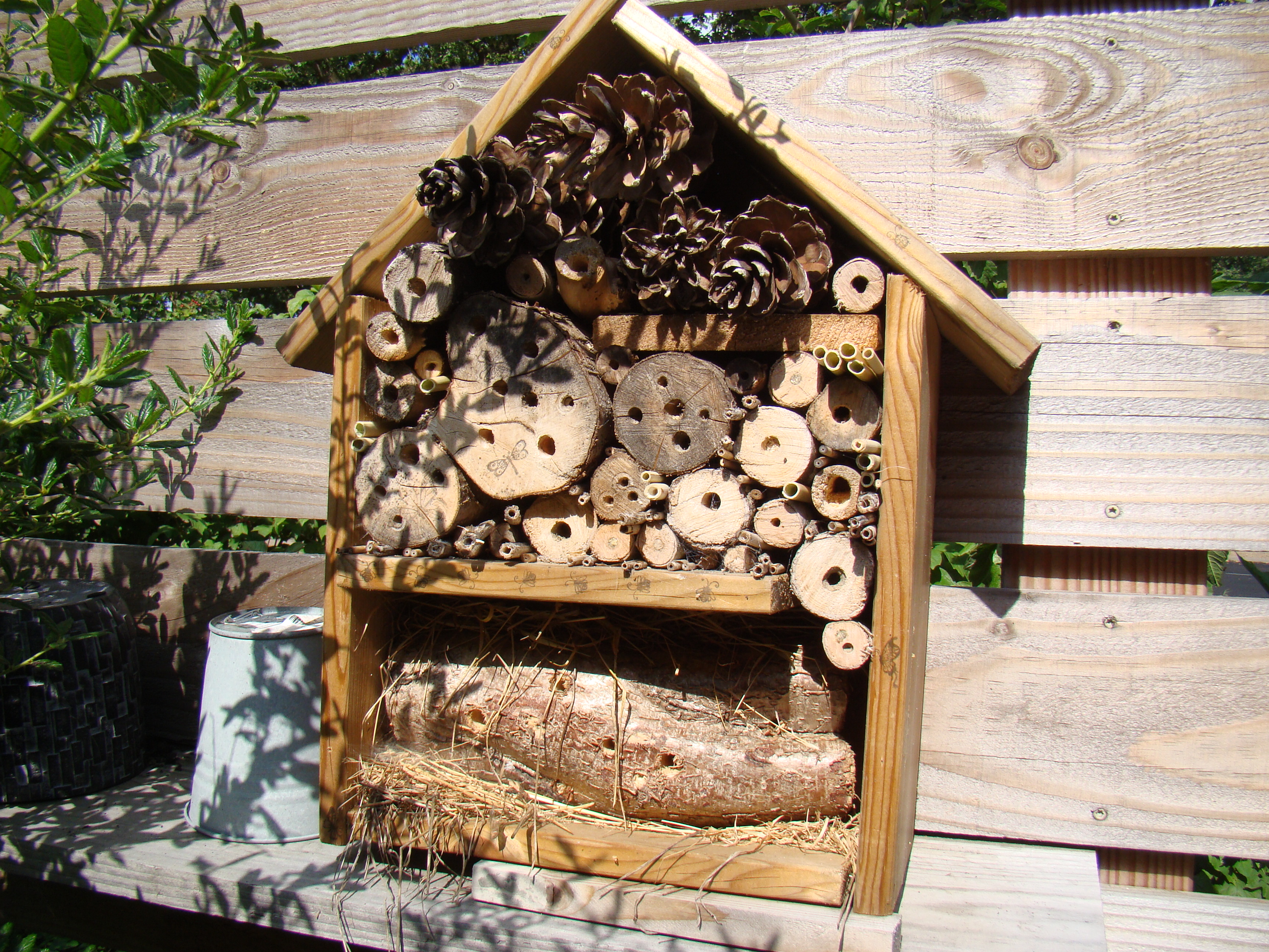 We gaan onder begeleiding van onze vrijwilligers samen met de kinderen insectenhotels maken. Hiervoor gebruiken we zoveel mogelijk natuurlijke materialen. Bijen maken graag een nestje in holle stengels, denk hierbij bijv. aan bamboe of rietstengels. Kijk eens in de tuin of ga materiaal zoeken in het park. Misschien hebben jullie in de schuur nog wel een paar oude planken staan die je mee mag nemen of een oude dakpan die je als afdakje kunt gebruiken. Wij zorgen uiteraard ook voor materiaal en gereedschap maar denk creatief en neem het mee. Insectenhotels kunnen in elke vorm gemaakt worden dus laat je fantasie de vrije loop.