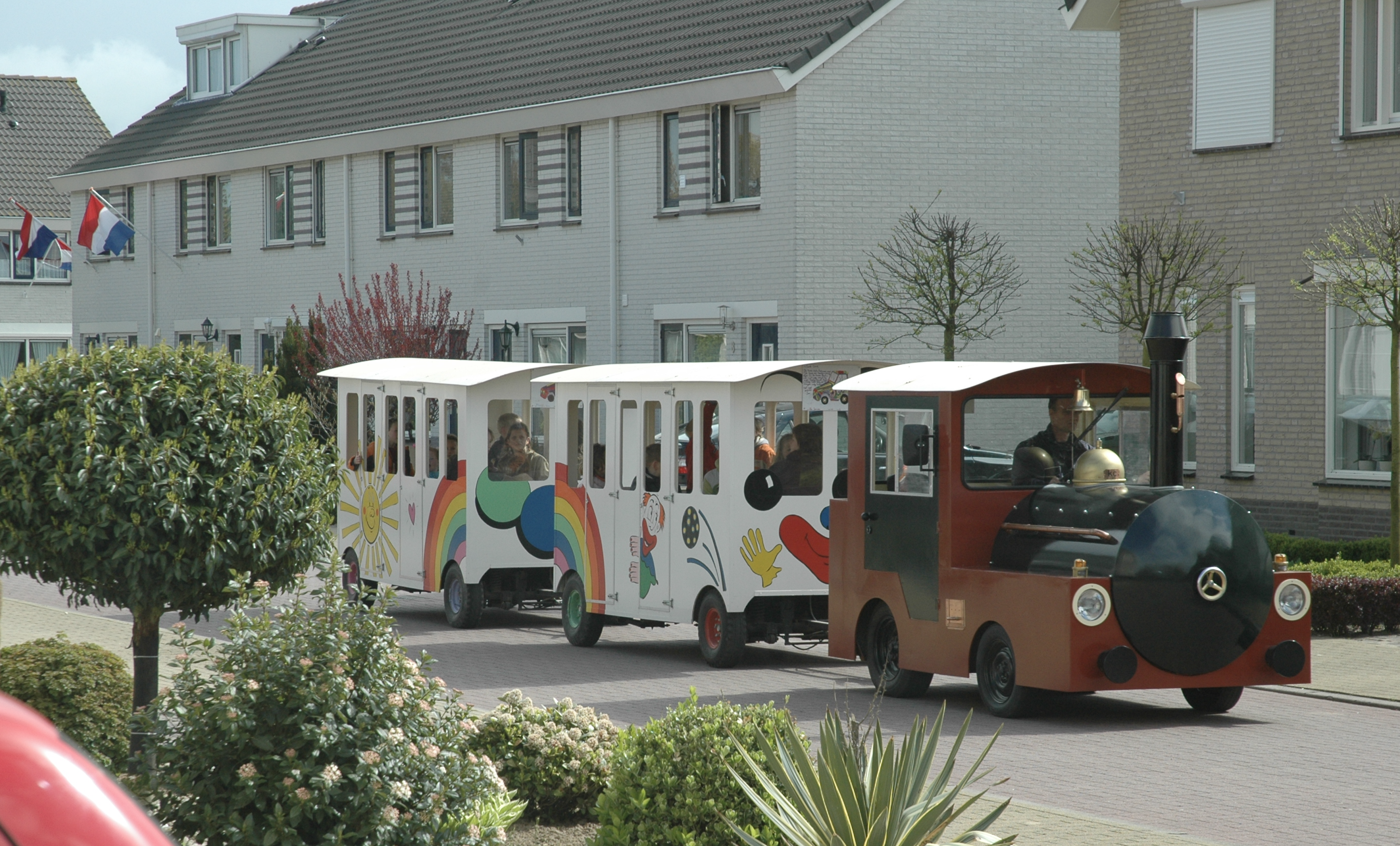 Op de foto (van Sjoerd Geurts) het bekende Kindercomité treintje dat dit jaar voor een keer in de stalling blijft staan.