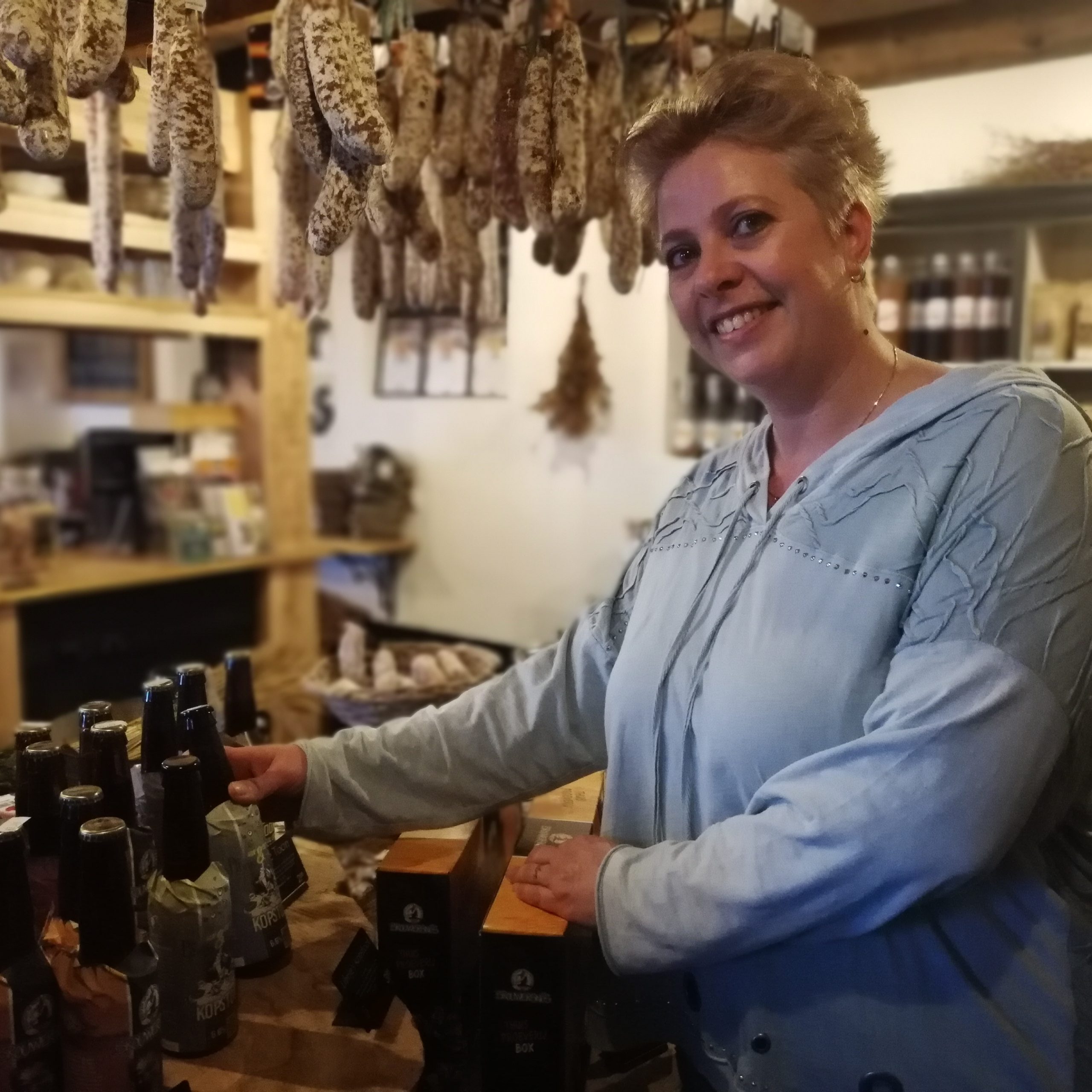 “Ik ben hier toevallig komen werken! Ik kende Esther al van de basisschool waar onze kinderen naartoe gingen. Toen ik een keer vla ging halen bij Hof zum Walde en ik Esther met een ‘ontplofte kop’ zag staan, heb ik mijn hulp aangeboden. Omdat de kinderen door corona toen thuis zaten, kon ze dat wel gebruiken! Zo gezegd zo gedaan en twee weken later stond ik zuivel te maken. Daarna ben ik eigenlijk niet meer weggegaan. Het maken van zuivel, zoals vla, yoghurt, chocolademelk en kwark is erg leuk om te doen. Later ben ik ook in de winkel zelf gaan staan. Het klantencontact maakt me altijd erg blij.”