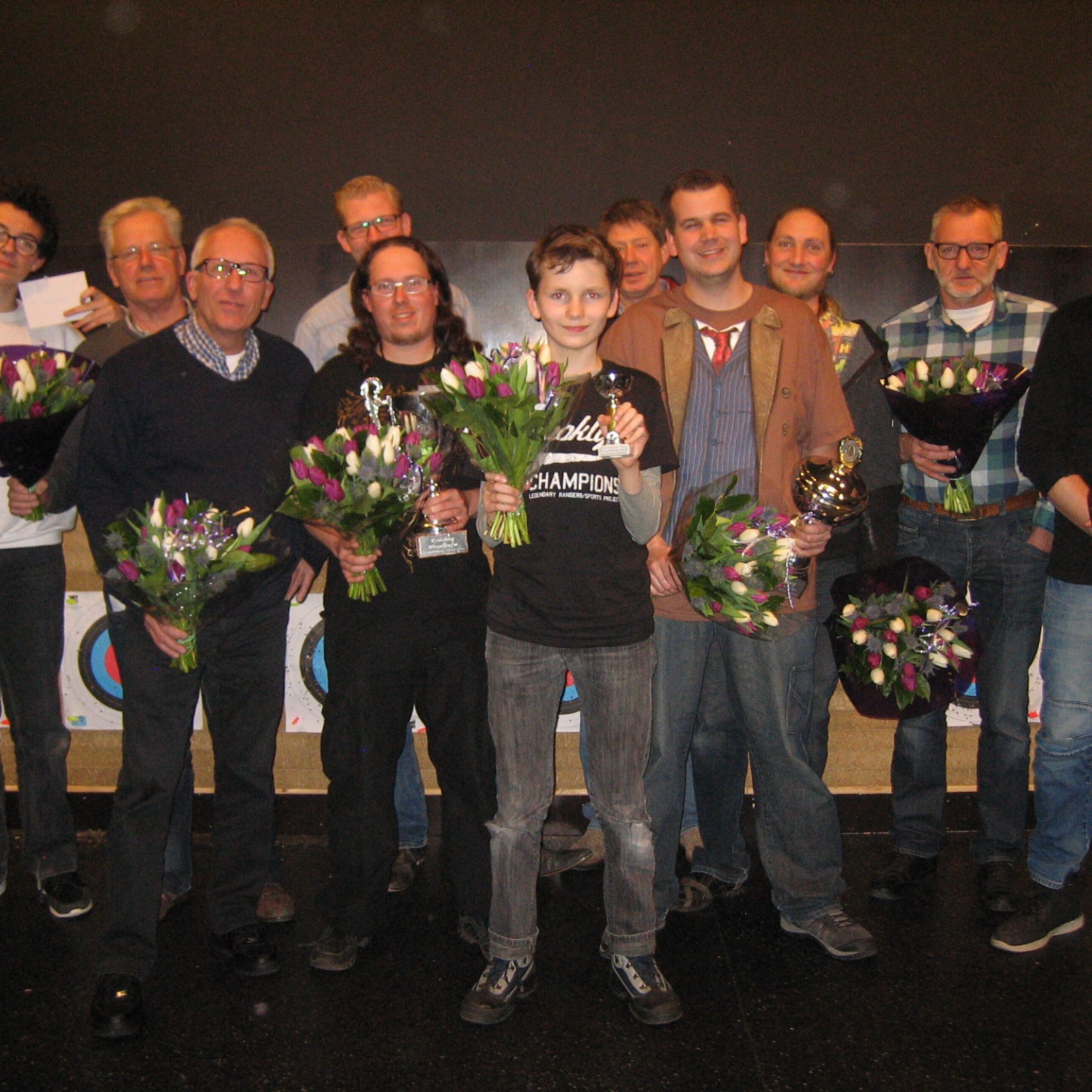 Tot de laatste week was er een binnen de disciplines (jeugd-handboog, handboog, kruisboog, luchtgeweer en luchtpistool) nog veel onbeslist. Dit maakte de prijsuitreiking alleen maar spannender! De prijsuitreiking vond pas plaats nadat er door alle deelnemers traditiegetrouw eerst langs alle disciplines van het schieten binnen Onderling Genoegen een schietrondje is gemaakt. Zo mochten de schutters “blind kruisboogschieten”, op “hertenjacht” gaan met het luchtgeweer, “handboogschieten” en hun geluk beproeven op de “geluksbaan”.