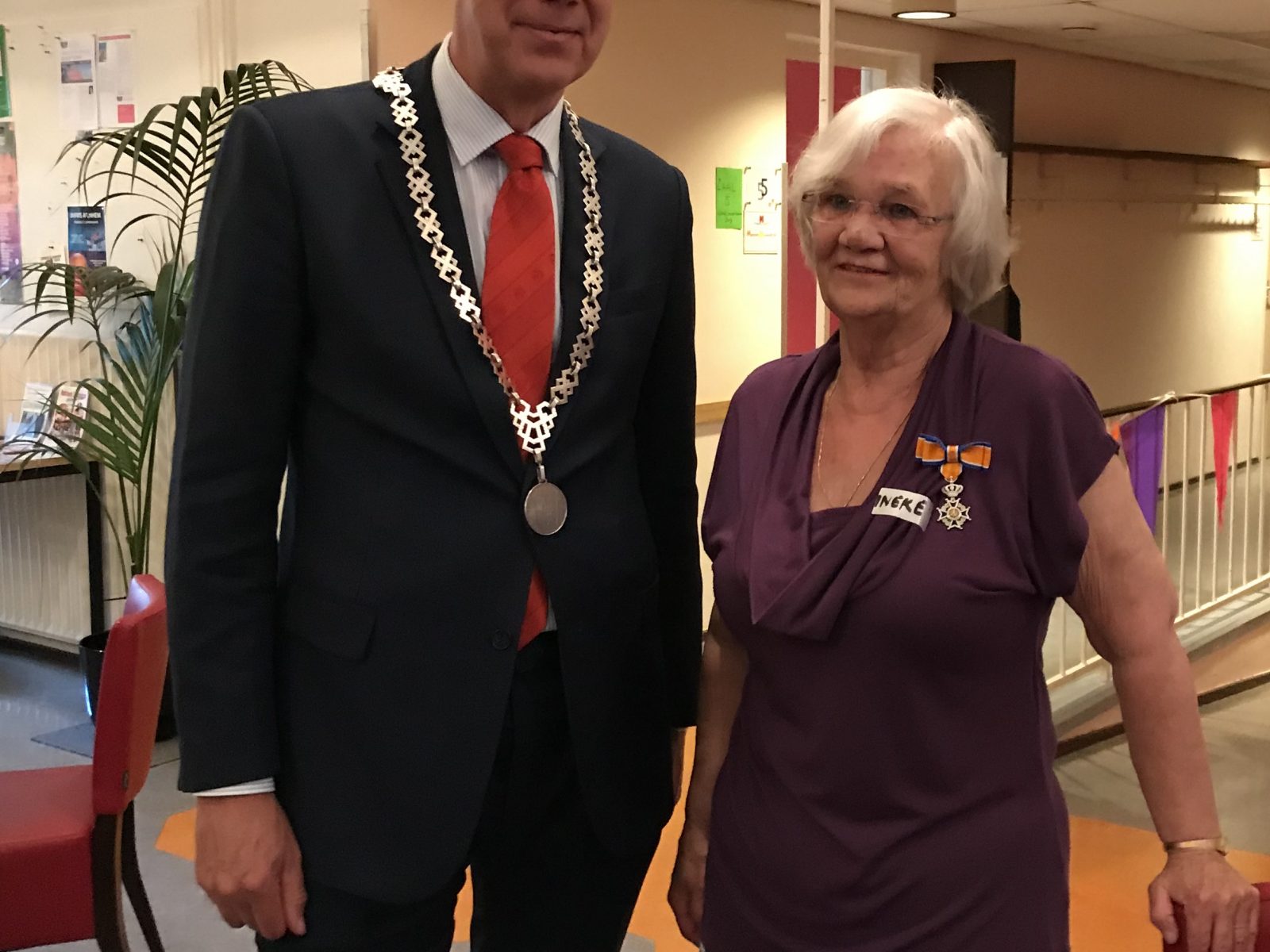 Op zaterdag 25 mei 2019 ontving mevrouw Ineke Edelbroek-Vos uit Westervoort uit handen van burgemeester Arend van Hout een Koninklijke Onderscheiding. Zij is benoemd tot Lid in de Orde van Oranje Nassau.