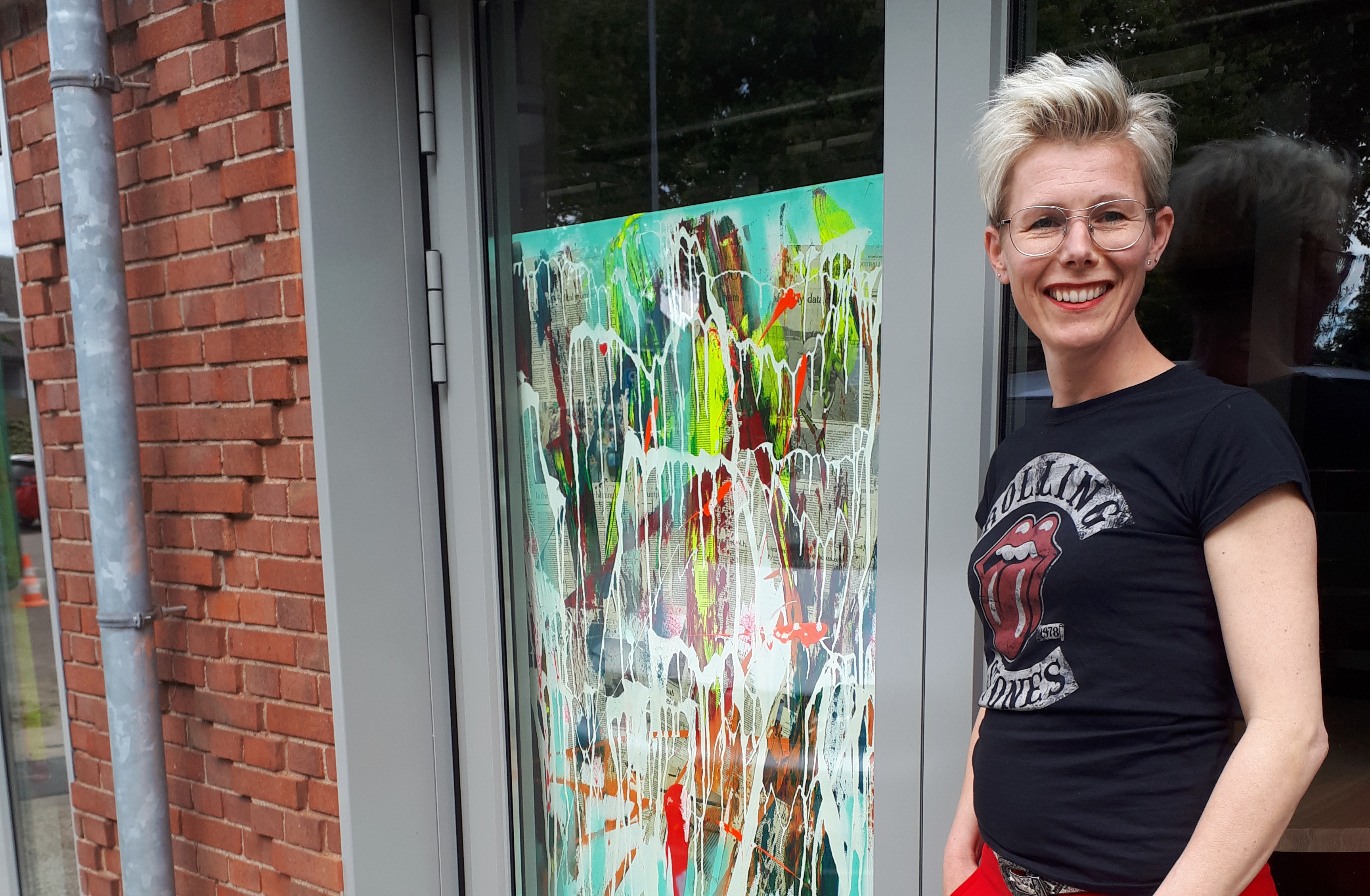 Breng jij binnenkort een bezoek aan de bibliotheek of heb je een afspraak bij andere partners in de Turmac Cultuurfabriek in Zevenaar? Neem dan een kijkje bij de ramen links naast de hoofdingang. Grote, vrolijke werken zijn hier te zien van kunstenares Edith Elshof Stevens (Byedith). Ook is er een kunstwerk van Edith te bekijken aan de Kerkstraat 16, waar voorheen het Liemers Museum was gevestigd. Edith: ”Ik denk dat kunst in deze tijd zoveel kan bieden; troost, verbinding, ontspanning, stof tot nadenken en vooral anders leren kijken naar de wereld, want dat is denk ik iets wat we nu hard nodig hebben.”
