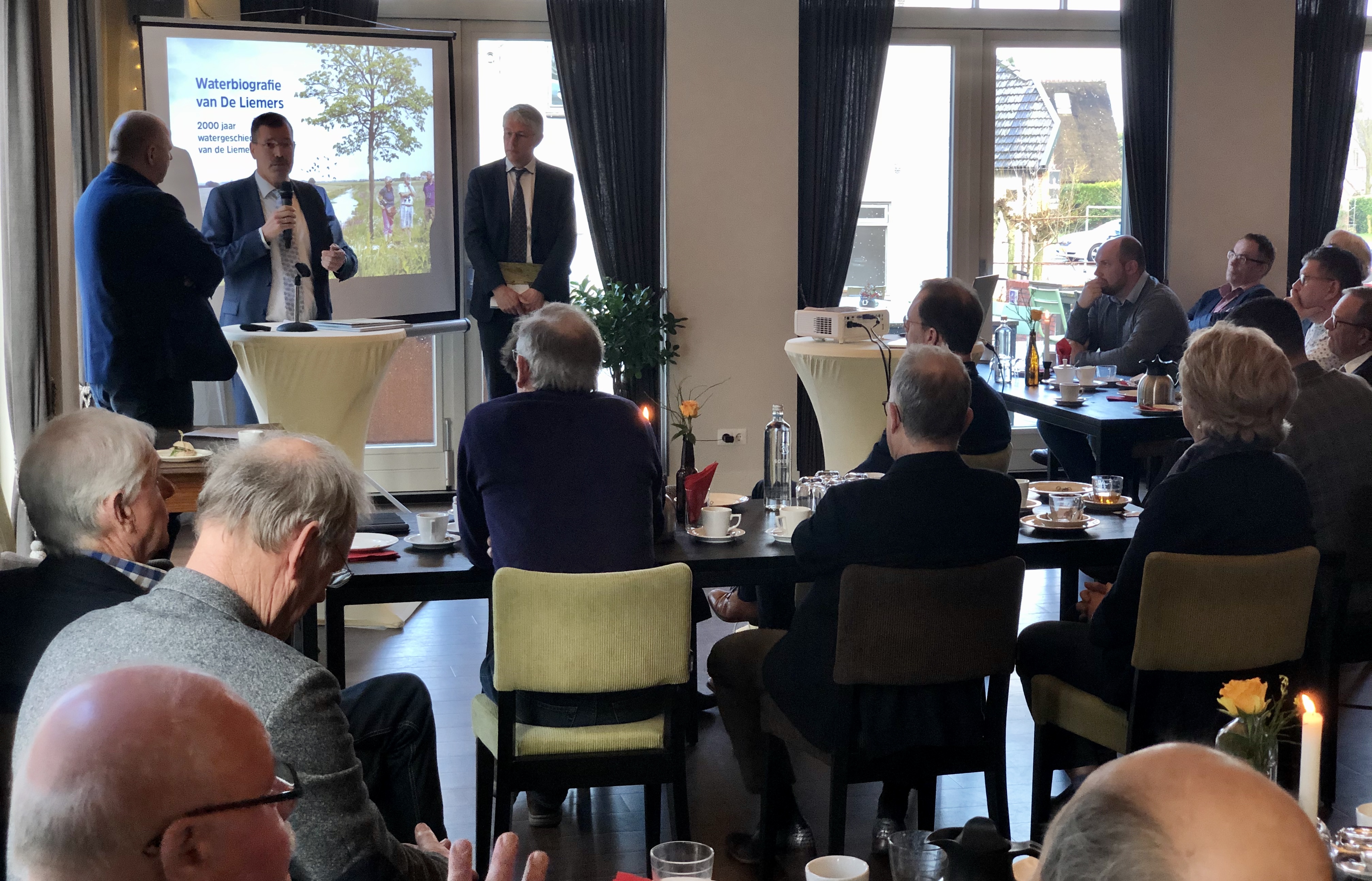 De presentatie vond plaats bij Thoen en Thans in Oud-Zevenaar. Nabij het water en de dijken die een grote rol spelen in de waterbiografie. In het boek is beschreven hoe de Liemers is ontstaan en welke rol het water daarbij speelt. De analyse van 2000 jaar watermanagement werd aangekleed met een boeiende presentatie van de schrijvers van de documenten, Peter Hermens en Dennis Worst. Zij namen de aanwezigen vanmorgen mee op reis door meer dan 20 eeuwen water in de Liemers. En met 10 inspiratiebeelden schetsen zij een mooie, vitale en aantrekkelijke toekomst voor deze regio. Een toekomst met visionaire oplossingen voor watervraagstukken die geïnspireerd zijn op het verleden.
