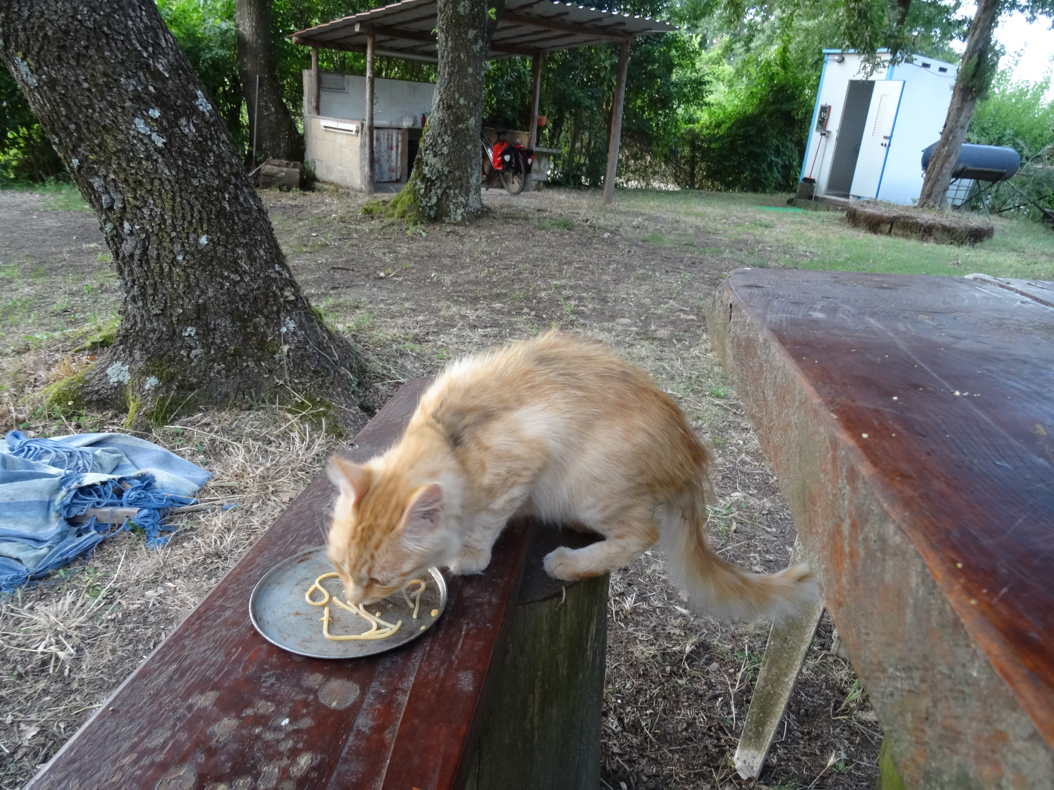 Rustig wacht ze het af. Ik geef haar een deel van de maaltijd en ze eet er heerlijk van.