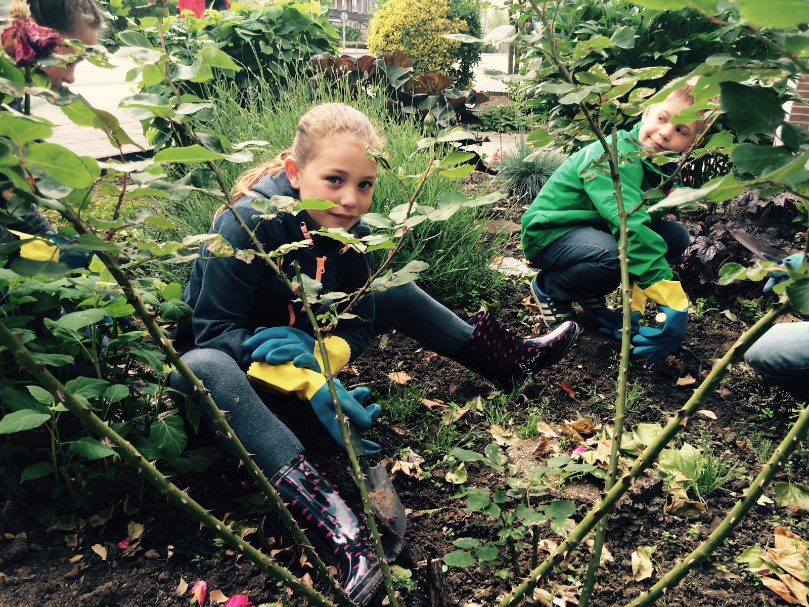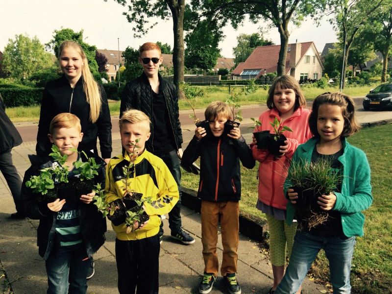 De leerlingen van basisschool De Klimroos in Westervoort (groep 5) zijn vanmorgen in kleine groepjes op pad gegaan om de tuinen van vijftien buurtbewoners in de wijk Hoogeind op te knappen. De leerlingen deden dit samen met met stagiaires van het leerbedrijf. De nieuwe planten voor elke tuin komen van de gemeente en de markeringsbordjes zijn gemaakt door Martin en Henk, bewoners van de Appelbloesem van Siza.