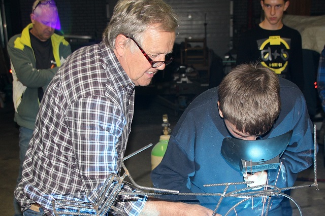In de garage van autobedrijf Frans Godschalk kwamen vijftien bouwers van carnavalswagens bij elkaar om de fijne kneepjes van het technisch lassen in de praktijk te leren. Docenten waren de specialisten Harald Wenting en Frans Godschalk. “We gaan vanavond een fietsje van ijzer maken”, zegt Godschalk tegen de 12-jarige Siebe Gies, die de workshop samen met vijf bouwers van zijn carnavalsgroep De Vruutdruuvels volgt.