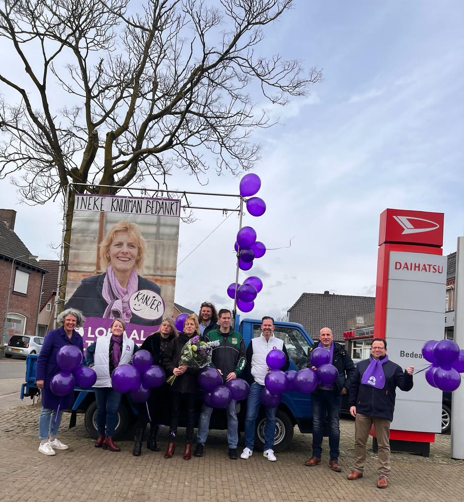 Ineke Knuiman was al eerder wethouder en raadslid van een van de lokale fusiepartijen van Lokaal Alternatief: Lijst Groessen. “Een grootste verrassing is op zijn plaats,” volgens lijsttrekker Gemma Tiedink-Koning, “we gunnen Ineke natuurlijk meer tijd voor haar partner, familie en vrienden na zo’n lange politieke carrière, maar wij en de inwoners van gemeente Duiven zullen haar empathie bij de meest kwetsbare inwoners in Duiven, Groessen en Loo zeker missen.”
