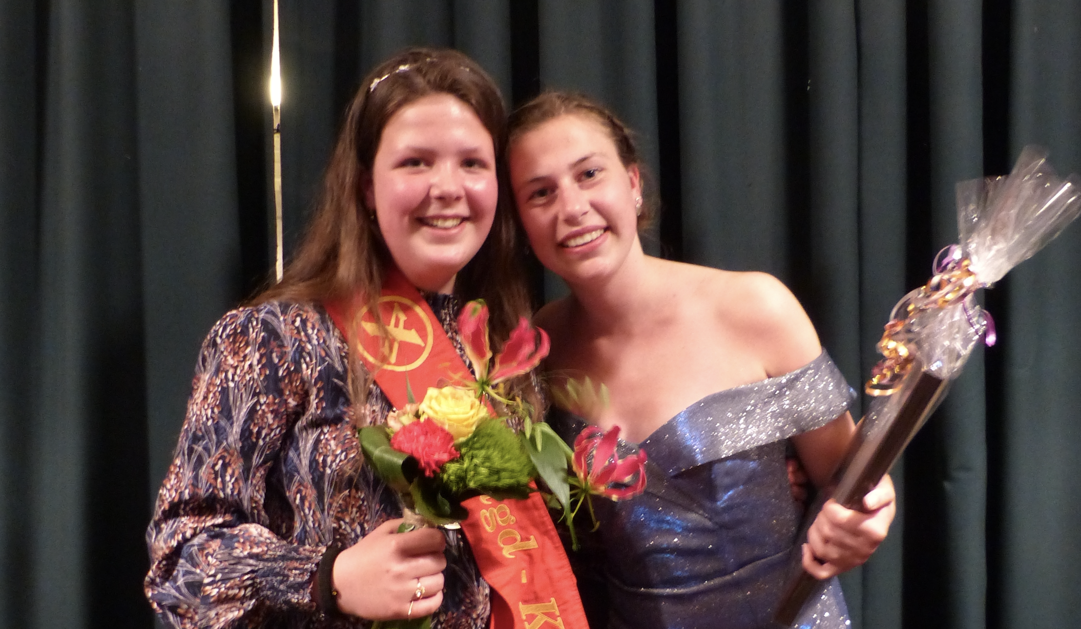 De nieuwe jeugdkoningin Lynn en scheidend jeugdkoningin Mabel.