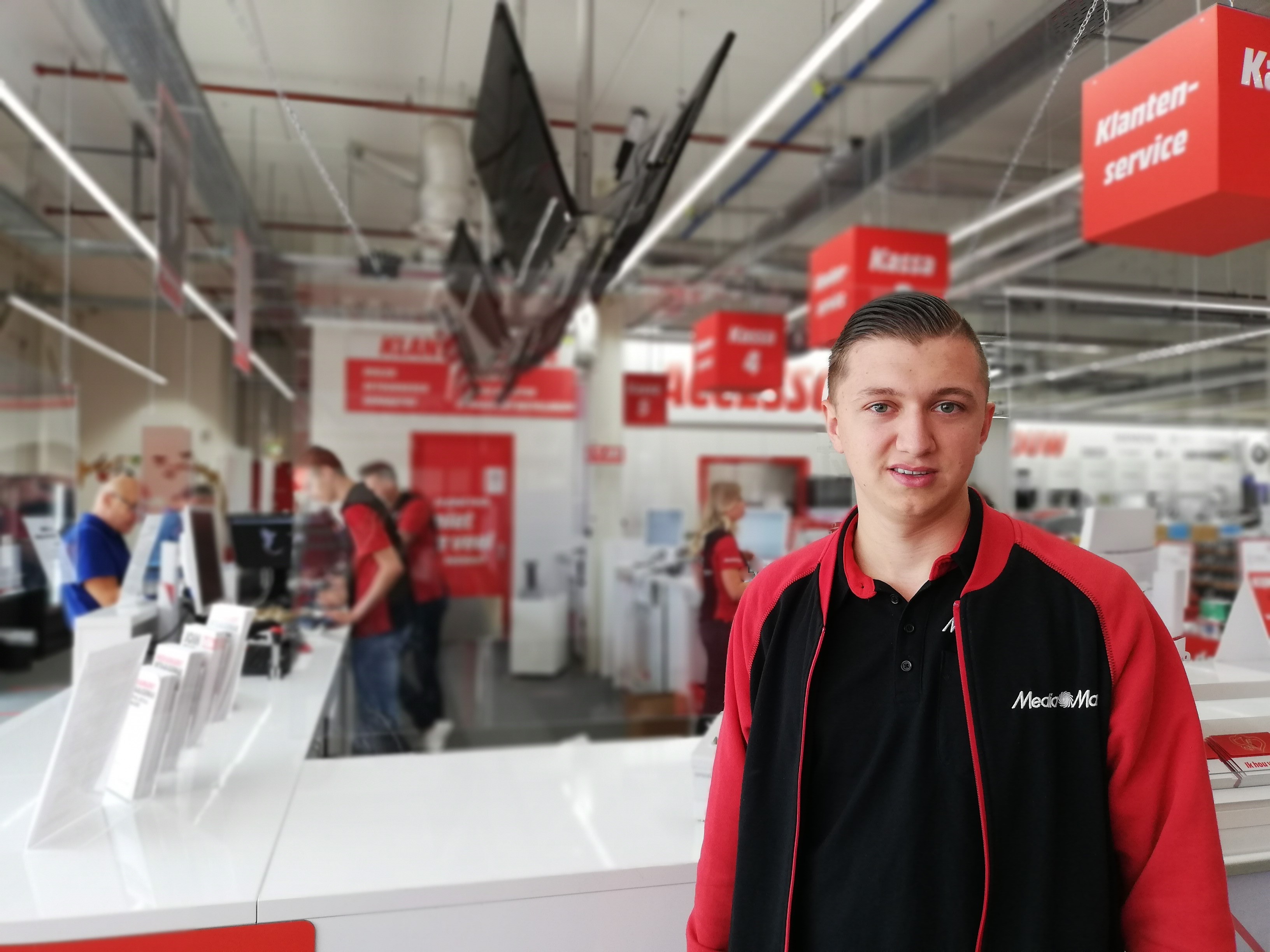“Jim Joosten, ik ben werkzaam bij de MediaMarkt in Duiven. Mijn functie is costumer care leader, eigenlijk een duur woord voor manager. Samen met nog een leidinggevende ben ik verantwoordelijk voor de klantenservice. Wij zijn het aanspreekpunt van de werknemers en staan klaar voor onze klanten. De werkzaamheden zijn heel divers: zo beheren we de vragen die naar ons toegezonden worden door klanten, leggen we online bestellingen klaar als de klant deze in de winkel wil ophalen en zijn we verantwoordelijk voor het retourneren van producten. We beoordelen dan het product en geven de klant het geld terug als alles in orde is. Ook helpen we een klant als die bij ons langs komt voor een reparatie. Wij ruilen het product om, of sturen het op naar een reparatiecentrum. Voor die gevallen hebben we ook leenproducten, die de klant tijdelijk kan gebruiken.”