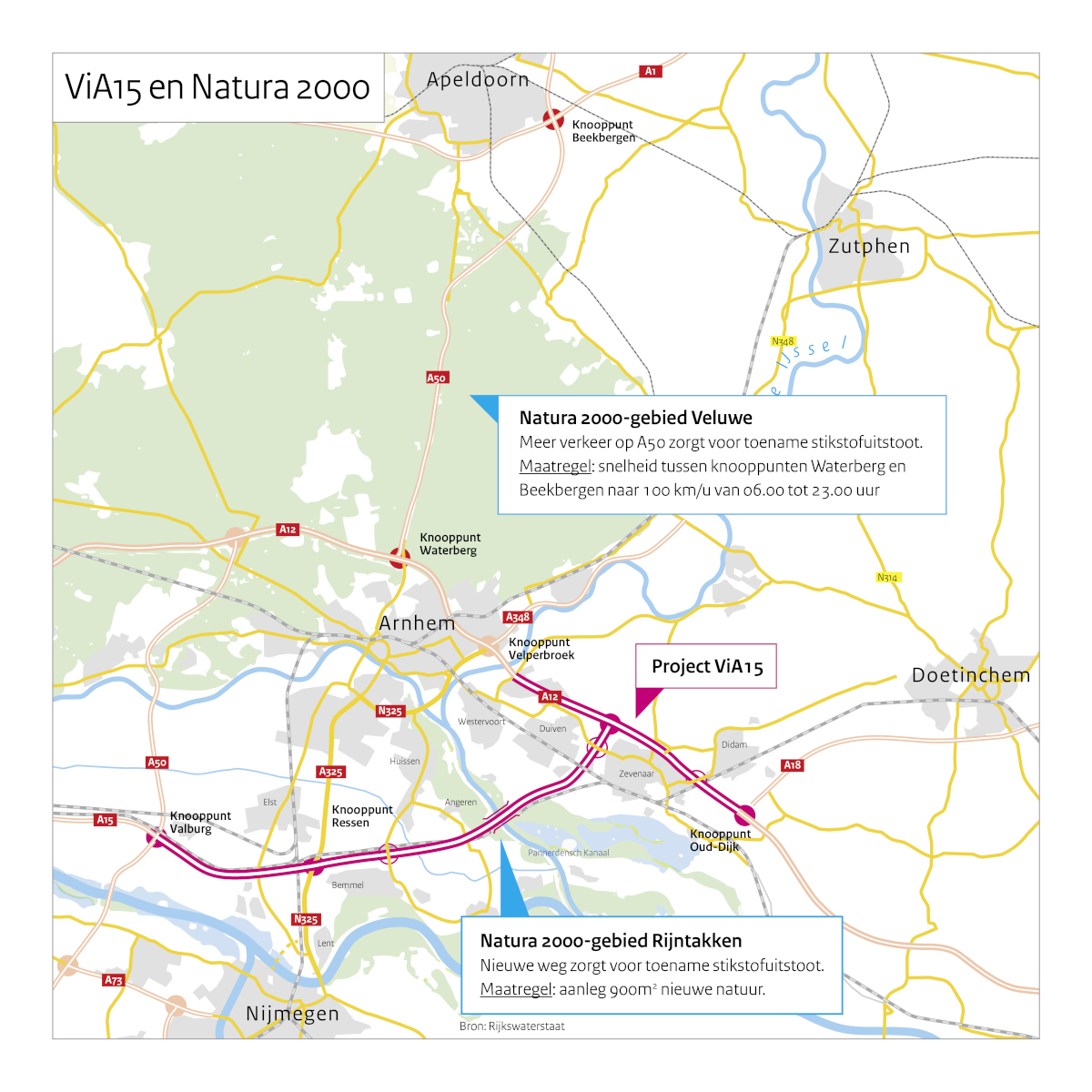 In het wijzigingsbesluit zijn onder andere maatregelen vastgelegd om de mogelijke gevolgen van stikstof op natuur – als gevolg van het project ViA15 – te voorkomen en te compenseren. Het oorspronkelijke tracébesluit voor het project ViA15 werd begin 2017 vastgesteld. Er werd toen door een aantal partijen beroep ingediend. De behandeling van die beroepen wordt door de Raad van State aangehouden, in afwachting van juridische procedures rondom het Programma Aanpak Stikstof (PAS). Hierdoor dreigt het project ViA15 verdere vertraging op te lopen. Daarom heeft de minister in overleg met de provincie Gelderland besloten om dit tracébesluit niet langer te koppelen aan het PAS. Dit maakt de weg vrij voor de Raad van State om een uitspraak te doen in de beroepsprocedure over het project ViA15. In het wijzigingsbesluit zijn de volgende maatregelen opgenomen: