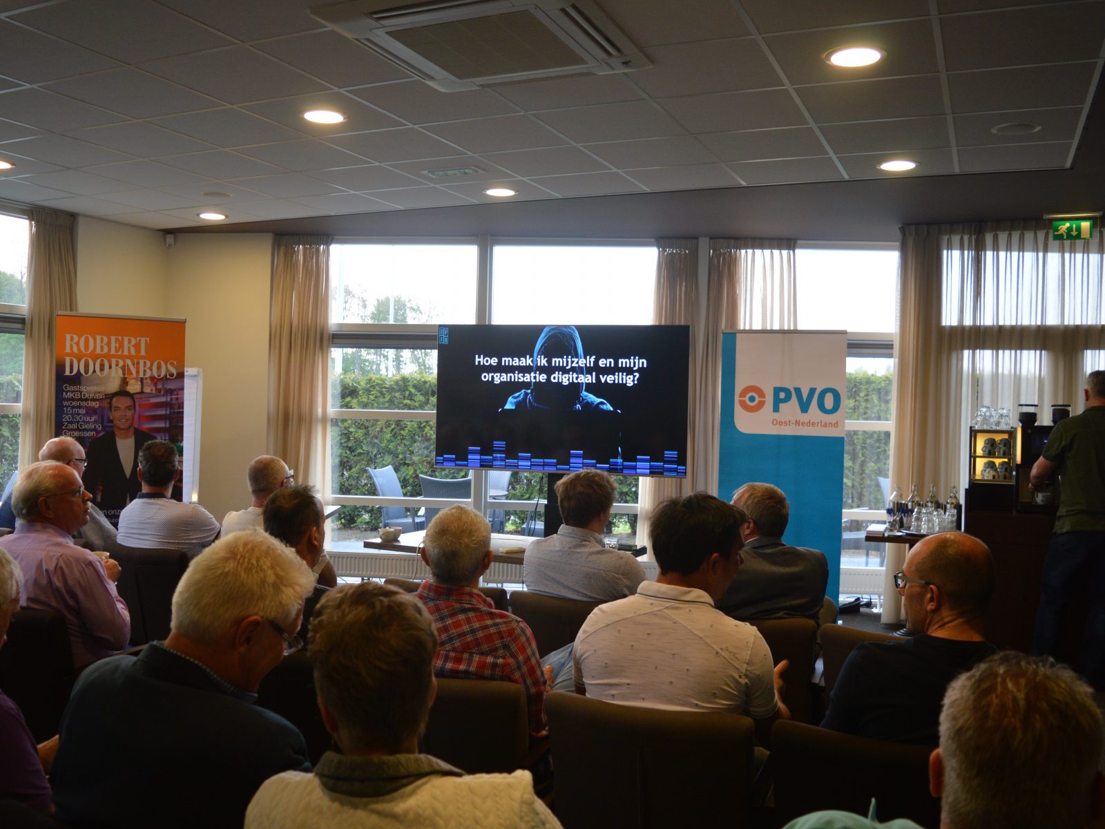 Hotel Gieling in Duiven was dinsdag 23 april het decor voor een informatieavond over Cybercrime, georganiseerd door MKB Duiven en Platform Veilig Ondernemen Oost-Nederland. In aanwezigheid van meer dan 50 belangstellenden opende Anton Jansen, manager PVO, de bijeenkomst in met de melding dat de verwachting is dat het accent van criminele activiteiten de komende jaren explosief zal stijgen naar het digitale domein. ‘Bij het sluiten van uw bedrijfspand, draait u de deur op slot en checkt u dat voor de zekerheid nog een keer. Doet u dat ook met het afsluiten van uw laptop? Heeft u het password dat u bij aankoop kreeg en standaard staat ingesteld op Admin/admin aangepast? Of de pincode van uw simkaart nog steeds op 0-0-0-0 staan?’