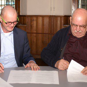 Fred Jansen en Henk Knip ondertekenen realisatieovereenkomst recycleplein Doesburg