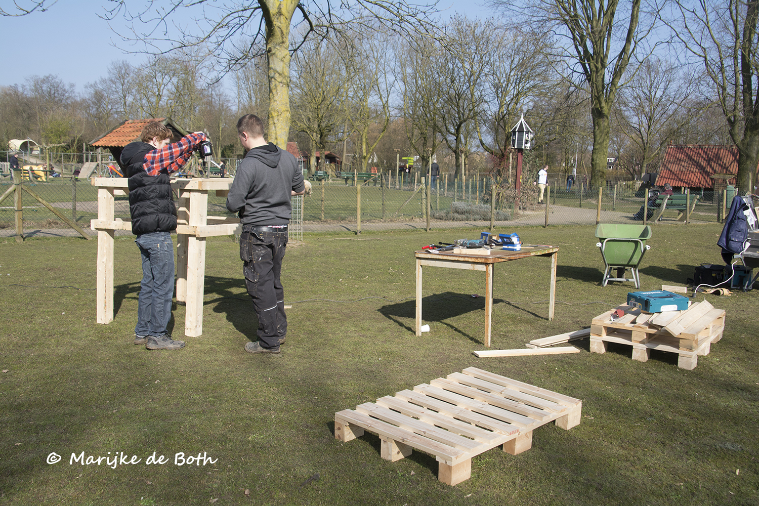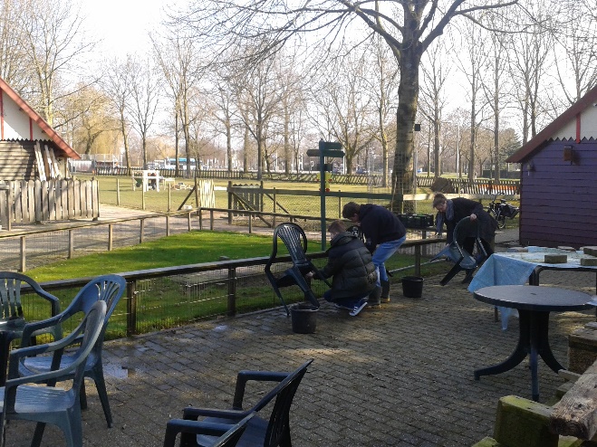 Met een stralend zonnetje hebben zaterdag 12 maart een groot aantal vrijwilligers zich uit de naad gewerkt op de Kinderboerderij weer klaar te maken voor het nieuwe seizoen.