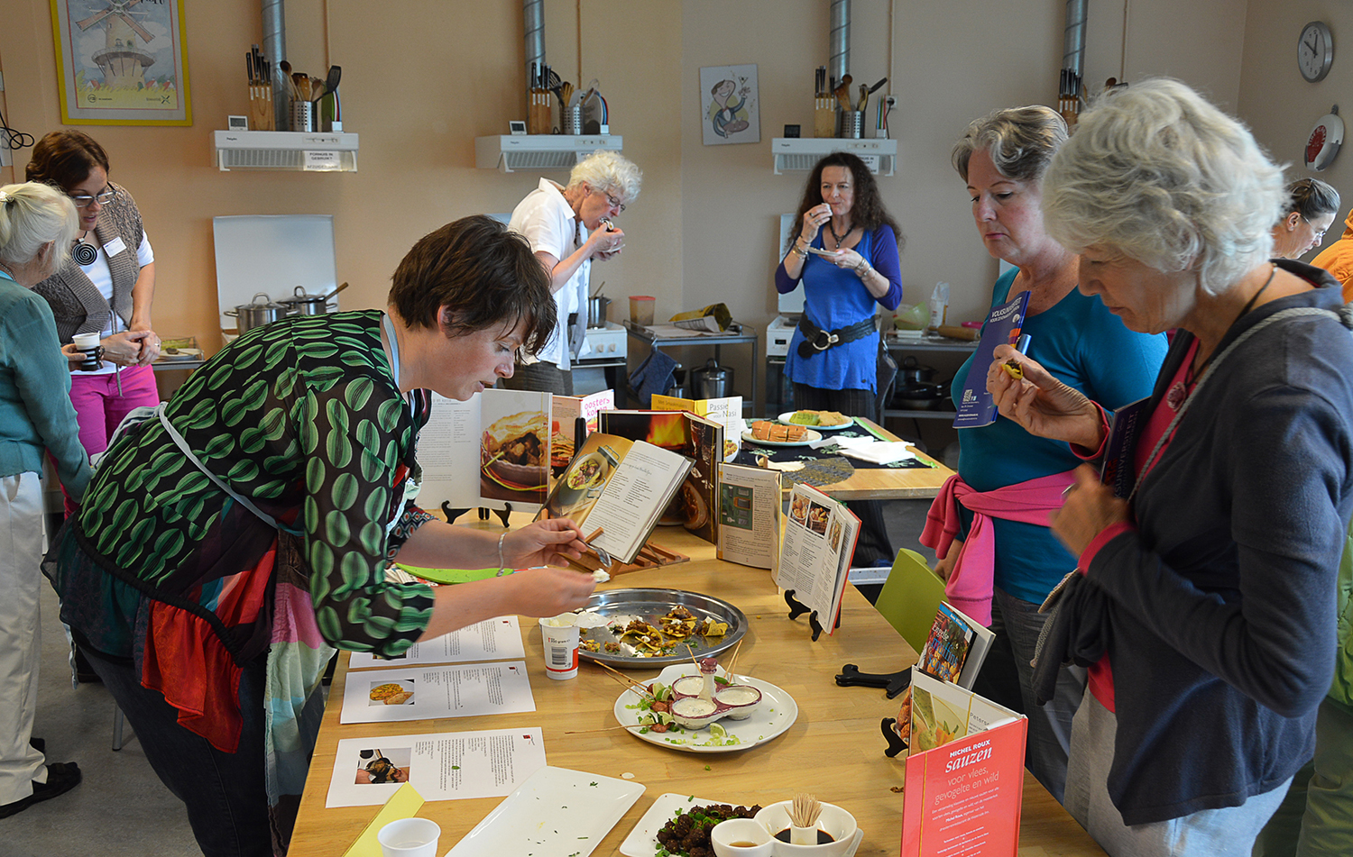 Dankzij de docent bloemschikken is het hele gebouw prachtig en sfeervol in de bloemen gezet en de kookdocenten zorgen voor lekkere hapjes. Veel cursisten grijpen de Open Dag aan om nader kennis te maken met de docent. Vanaf de tweede helft van september gaan de cursussen van start. Er is keuze uit meer dan 200 verschillende activiteiten op het gebied van talen, kunst & cultuur, kunstzinnige vorming, persoonlijke ontwikkeling en informatica.