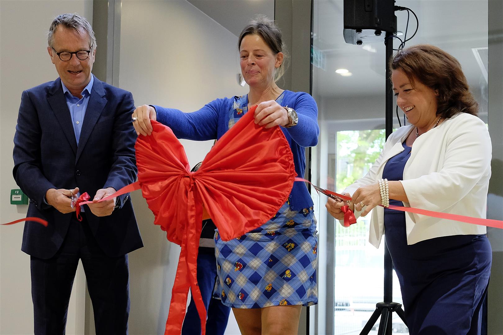 Vandaag is het eerste gedeelte van het nieuwe gemeentehuis van Zevenaar geopend in het bijzijn van de medewerkers van de gemeente. De openingshandeling is verricht door burgemeester Jan de Ruiter, wethouder Tienke van der Werf en gemeentesecretaris Saskia Wiersma.